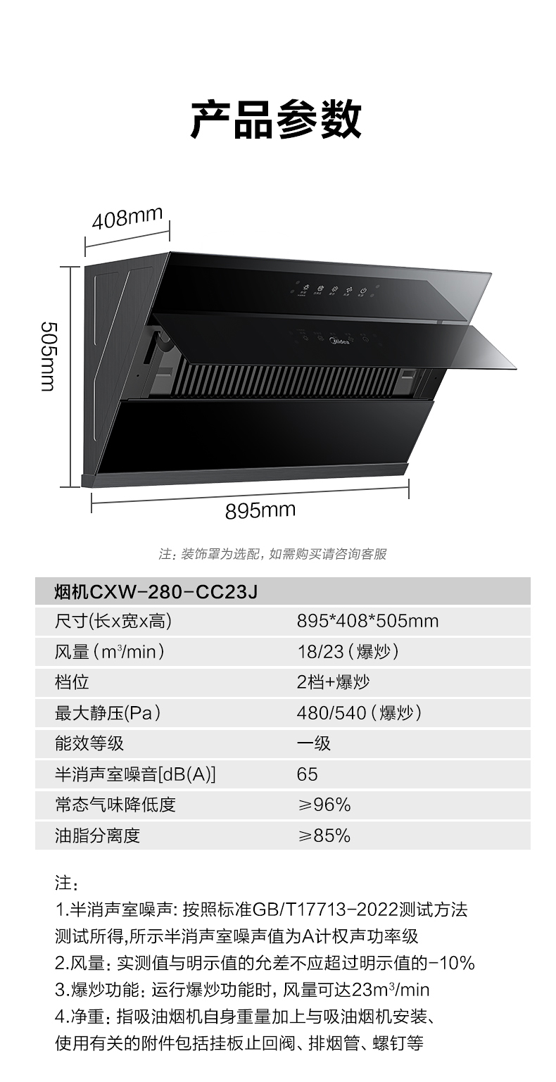 美的(Midea) 油烟机 CXW-280-CC23J 18/23³/min 黑色(单位:台)