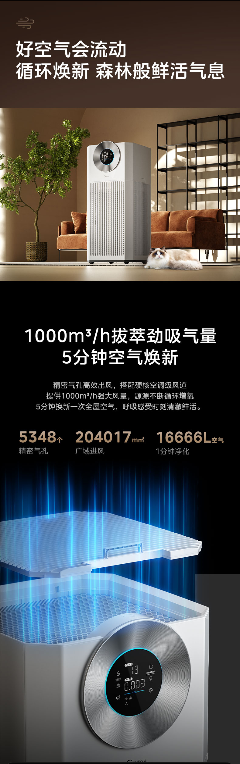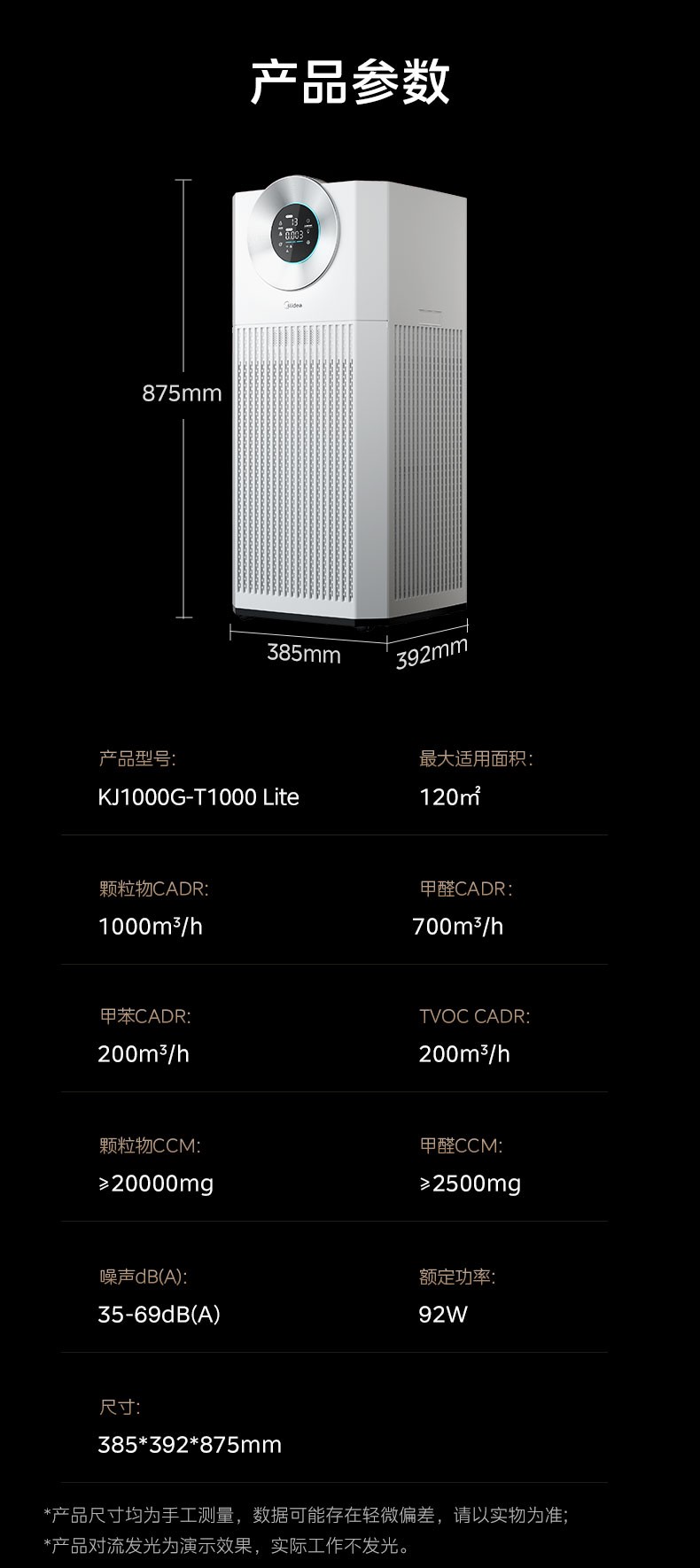美的(Midea) 净化器 KJ1000G-T1000 Lite 92w 白色(单位:台)