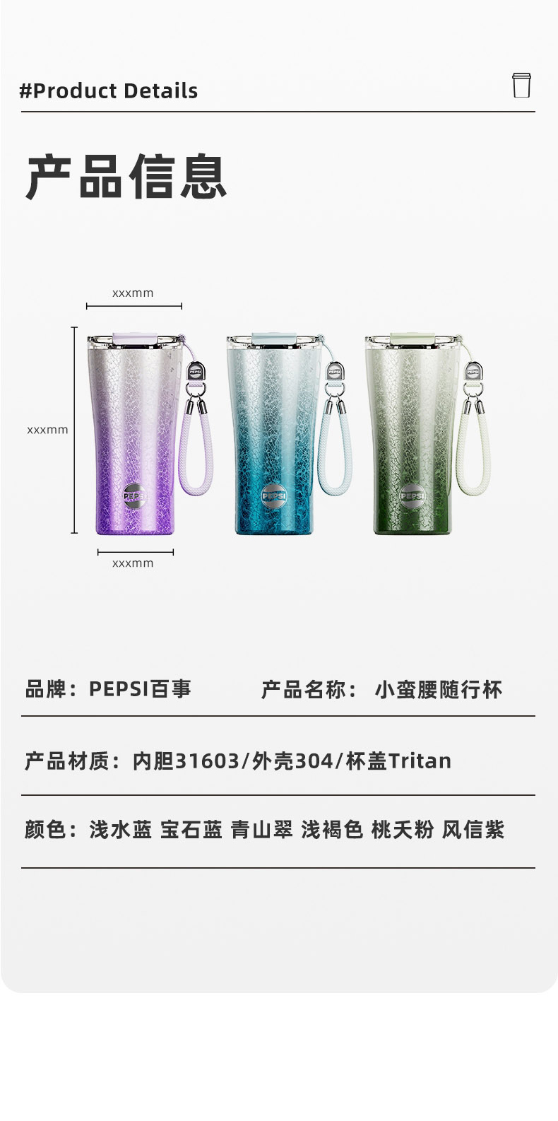 PEPSI百事 冰裂咖啡杯 BS-K-620-022 620ML 桃夭粉(单位:个)