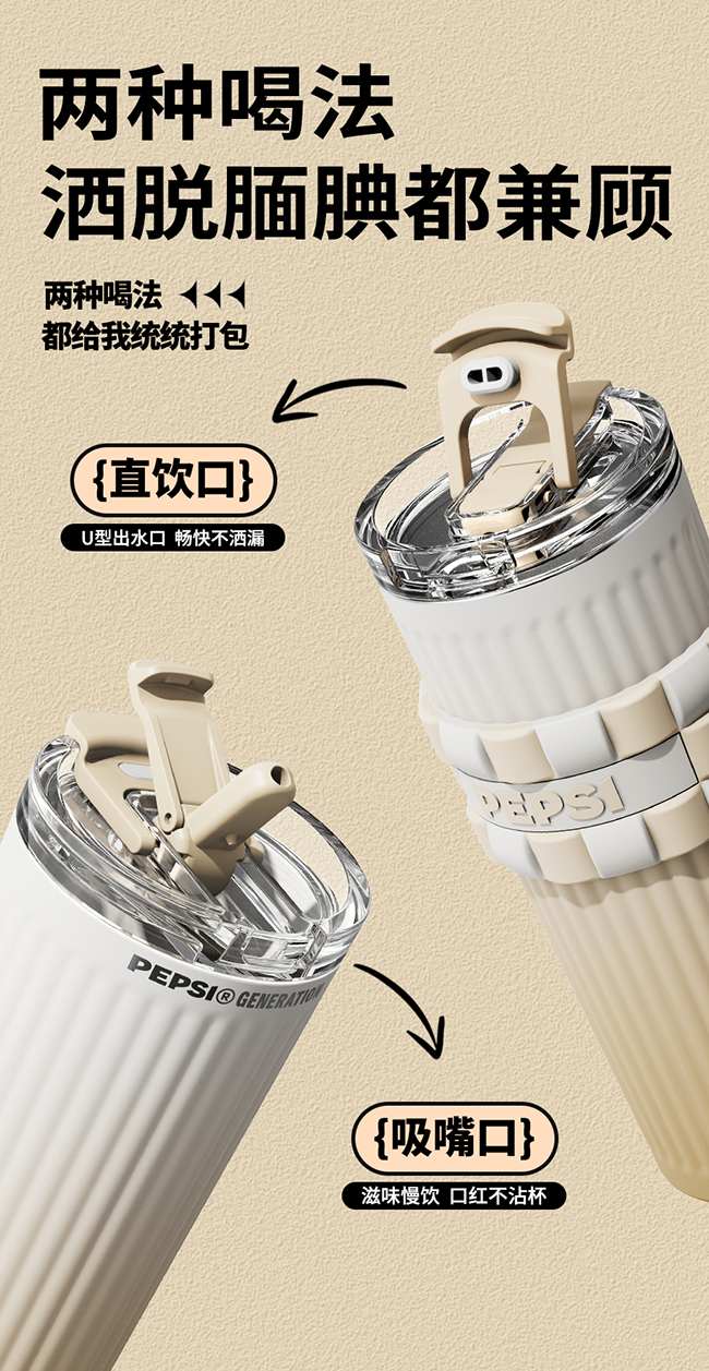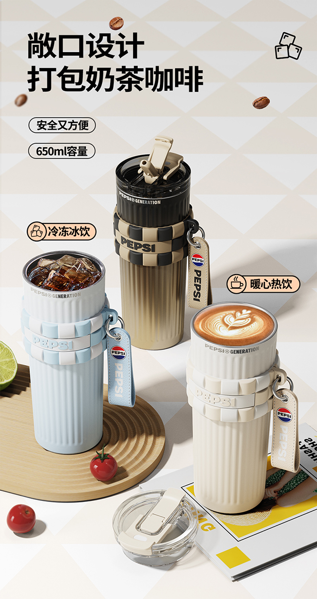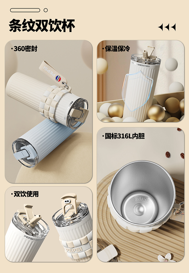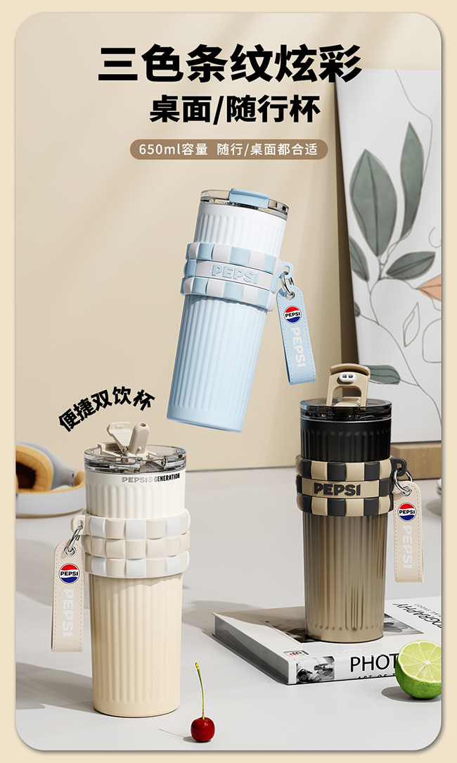 PEPSI百事 三色条纹炫彩桌面/随行保温杯 BS-S-650-011 650ml 白色渐变(单位:个)