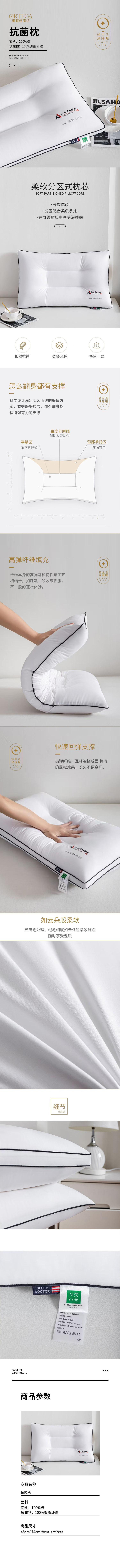 奥特佳 抗菌枕 002-010017 48cm*74cm*8cm(±2㎝) 本白色(单位:个)