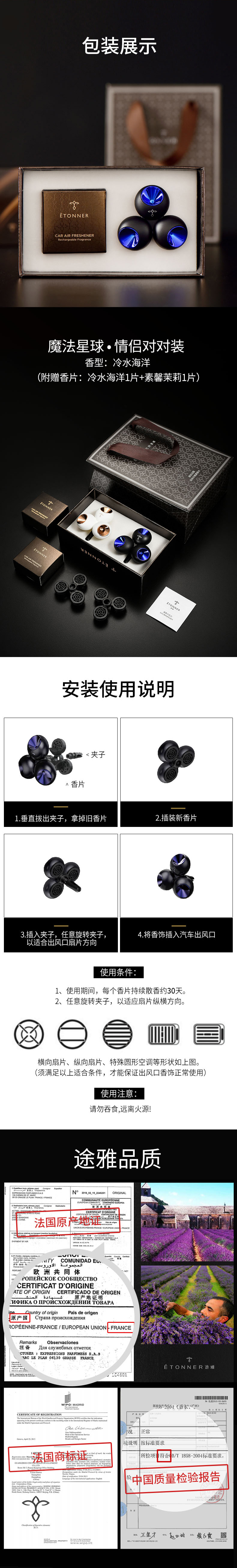 途雅( ETONNER)车载出风口香水 空调香薰夹 风口装饰 香薰除异味 魔法星球黑白对装海洋百合/支