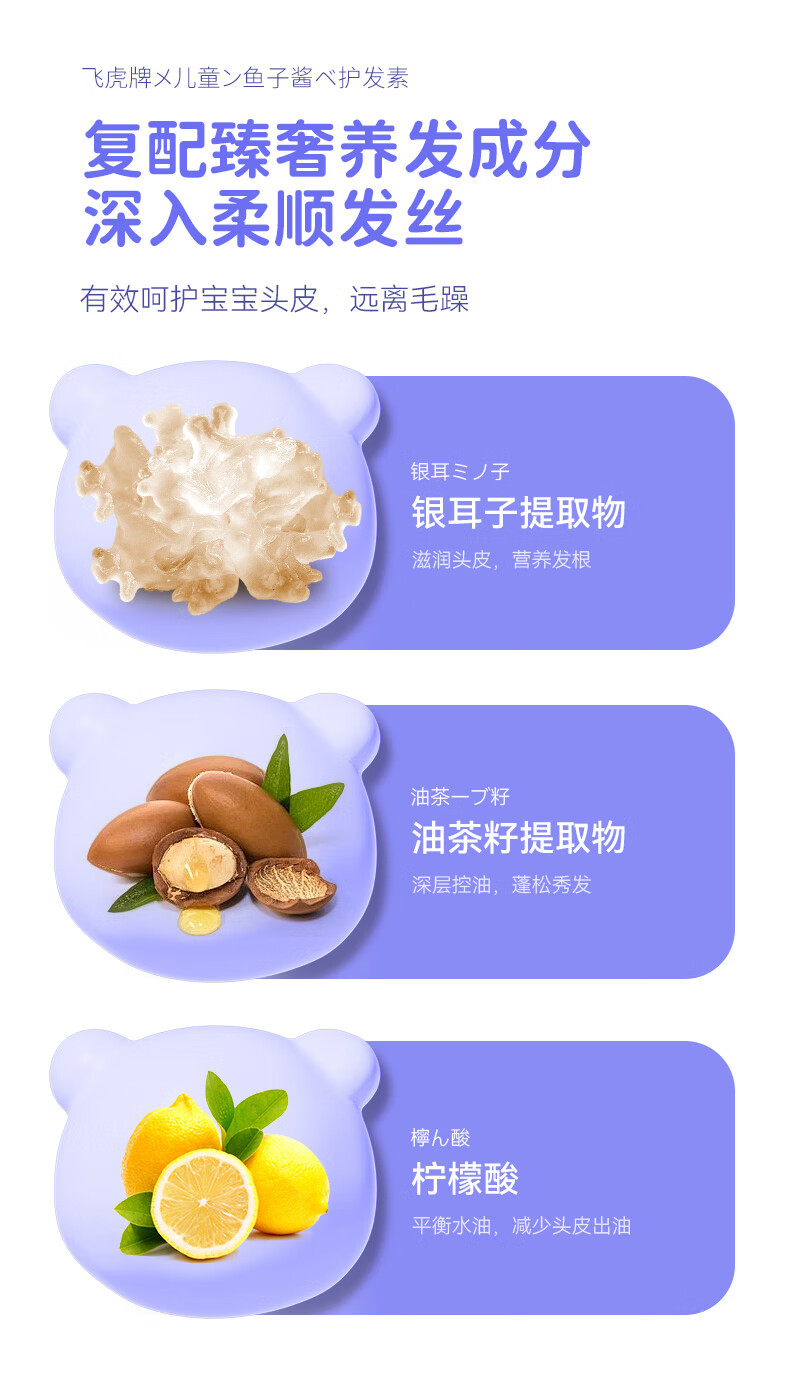 飞虎牌 儿童护发素 鱼子酱 200g 白色(单位:瓶)