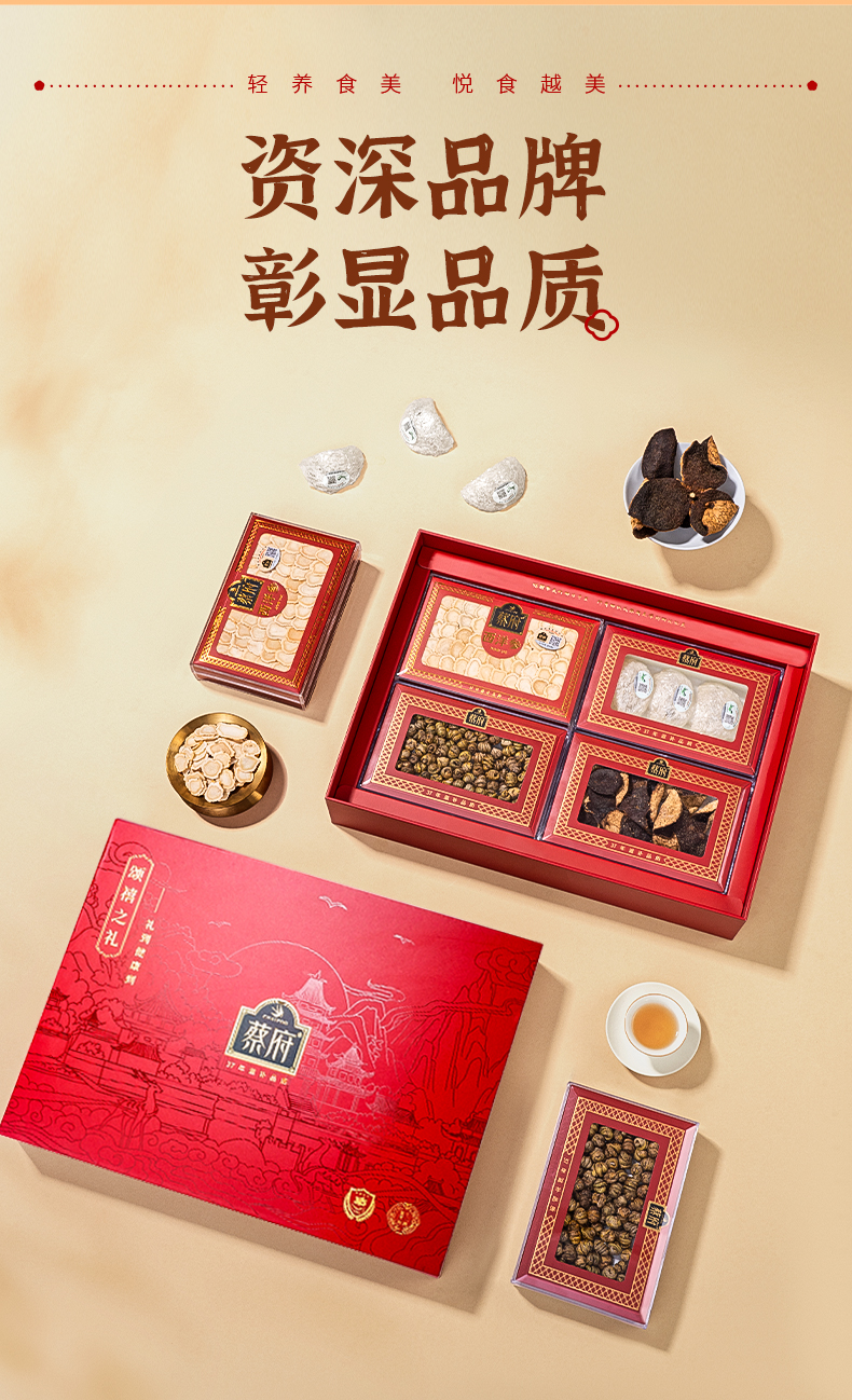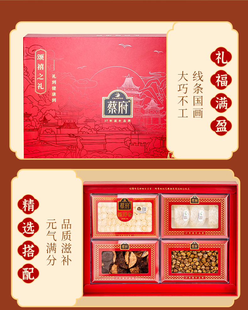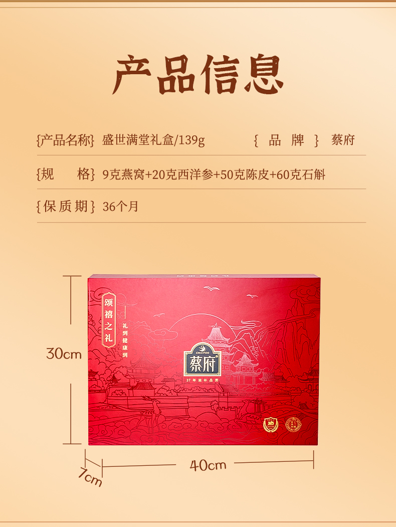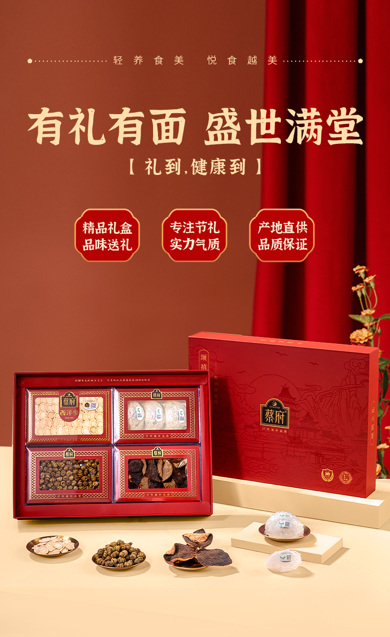蔡府(CHAIFOO) 滋补干货礼盒燕窝西洋参陈皮石斛 盛世满堂礼盒 139g 红色(单位:盒)