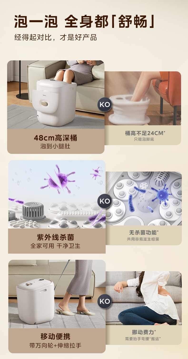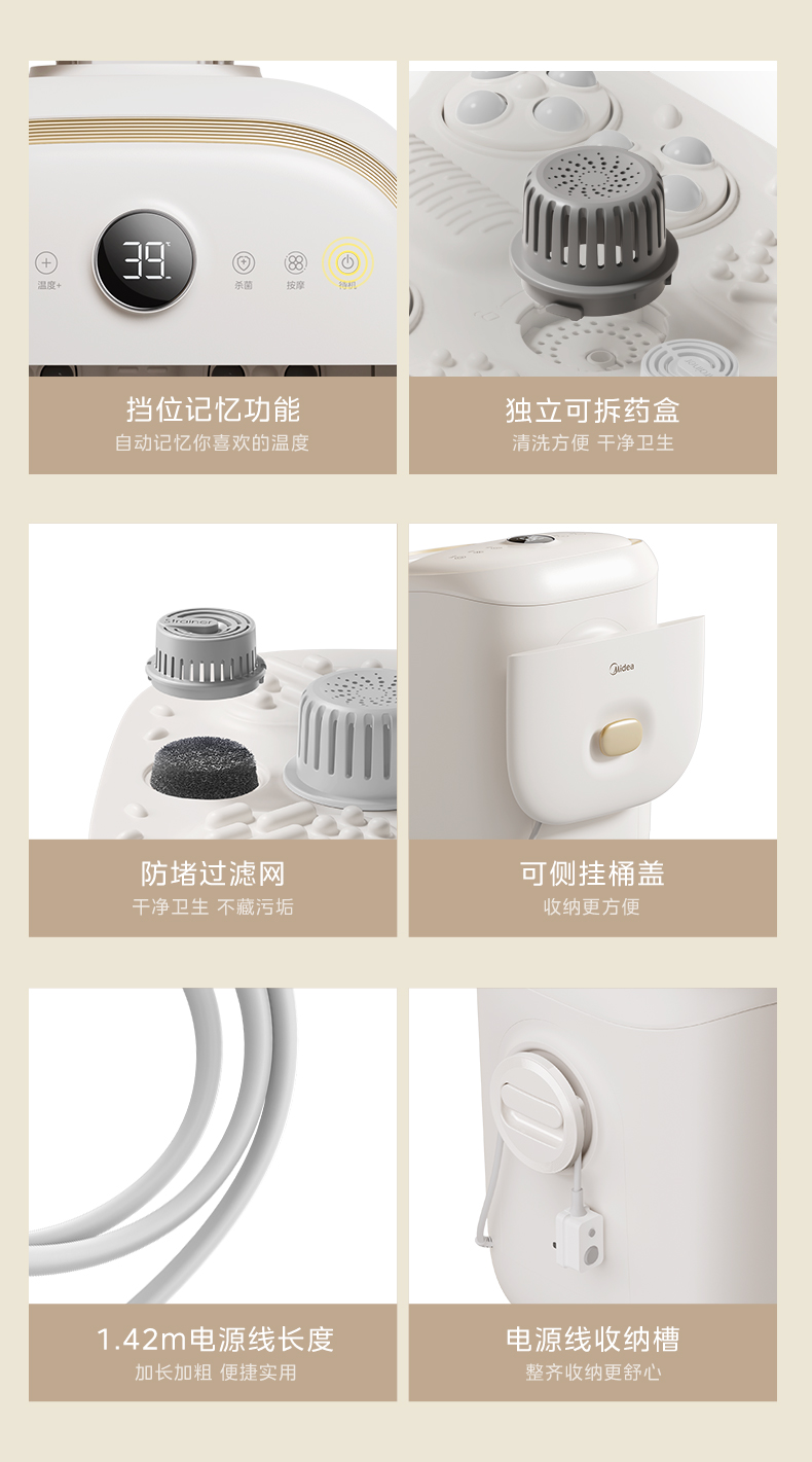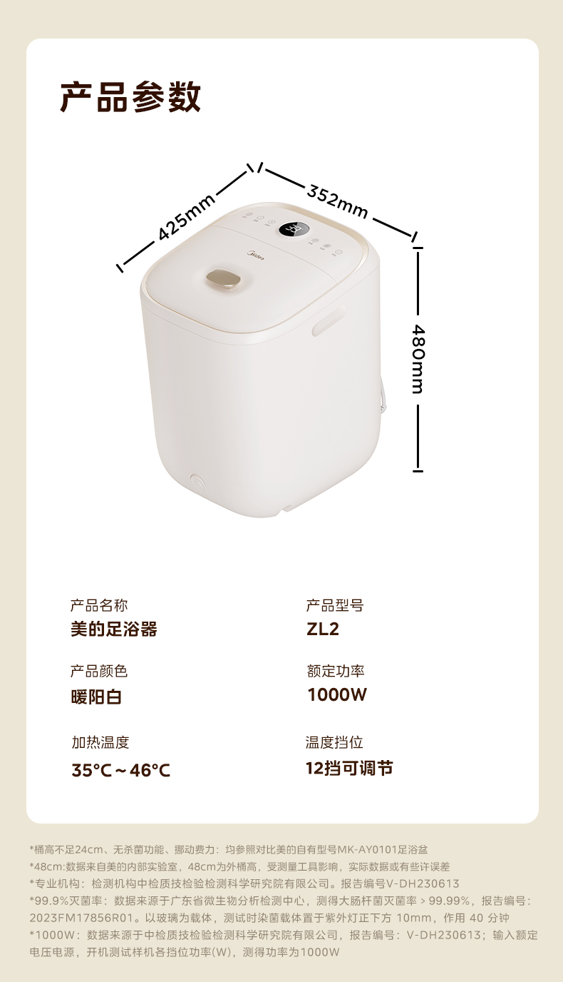 美的(Midea) 泡脚桶杀菌足浴盆 ZL2 1000W 白色(单位:台)