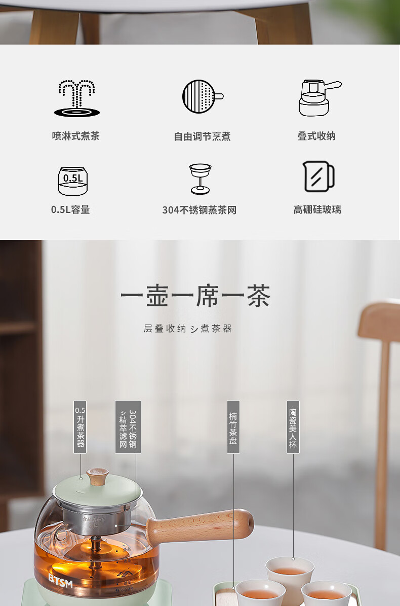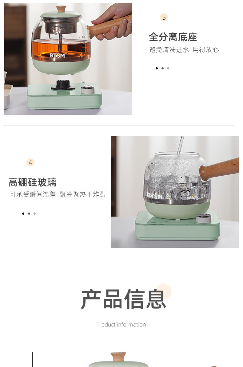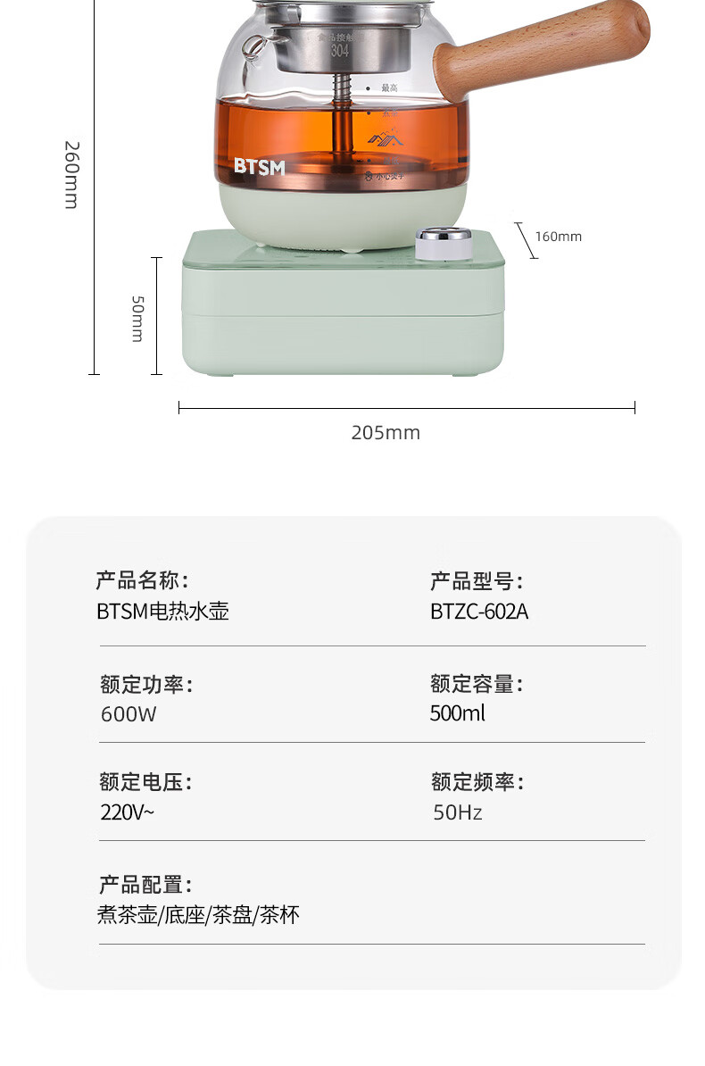 BTSM 电热水壶 BTZC-602A 壶体*1陶瓷杯*3 绿色(单位:套)