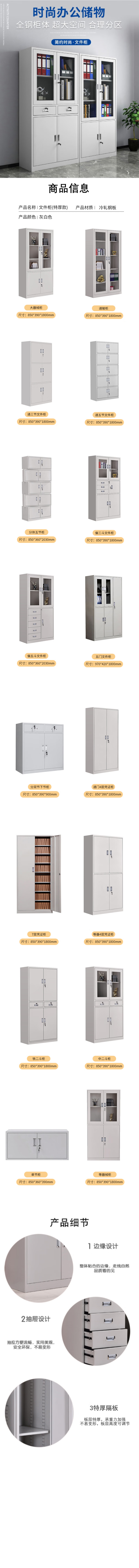 企诺 办公文件柜特厚中二斗柜 QNGa10A1-08PA 850*390*1800mm 灰白色(单位:个)