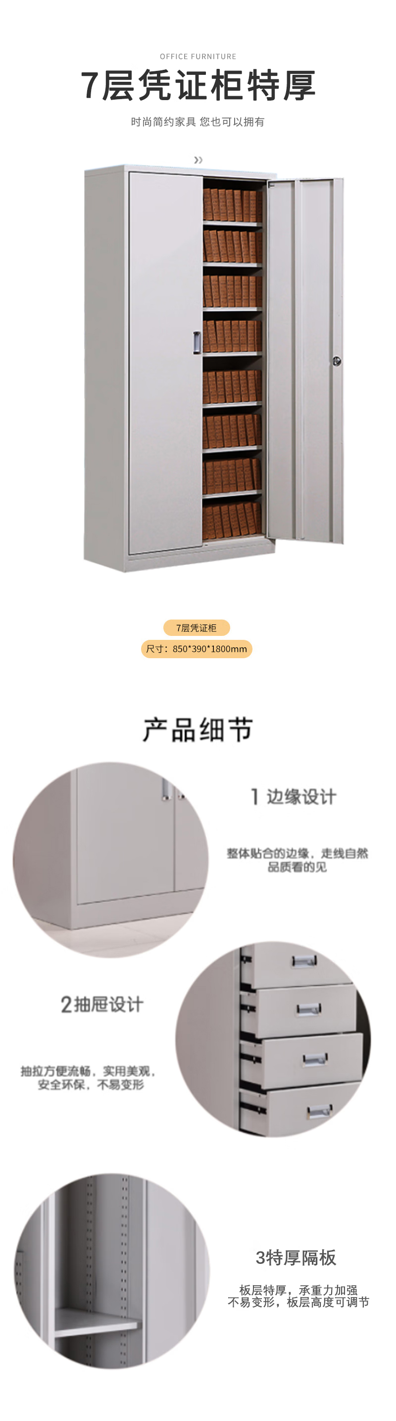 企诺 办公文件柜特厚7层凭证柜 QNGa14A1-08PA 850*390*1800mm 灰白色(单位:个)