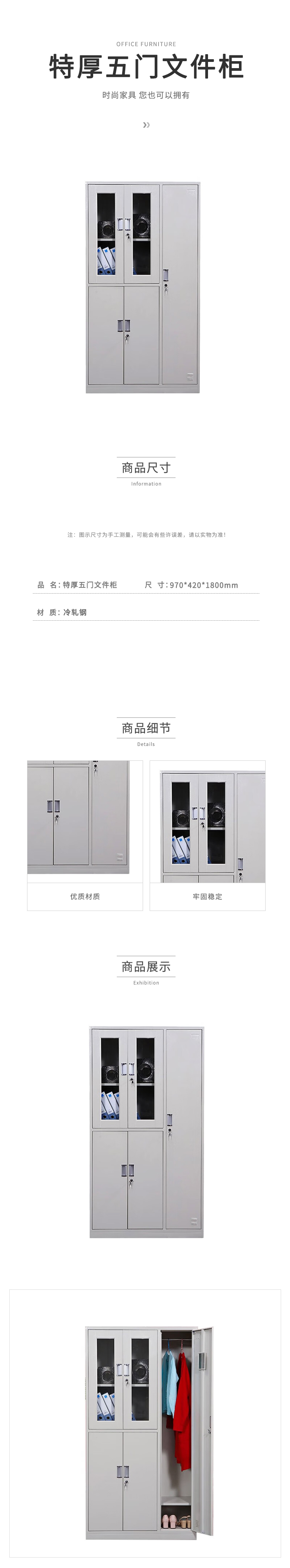 企诺 办公文件柜特厚五门文件柜 QNGa07A1-08PA 970*420*1800mm 灰白色(单位:个)