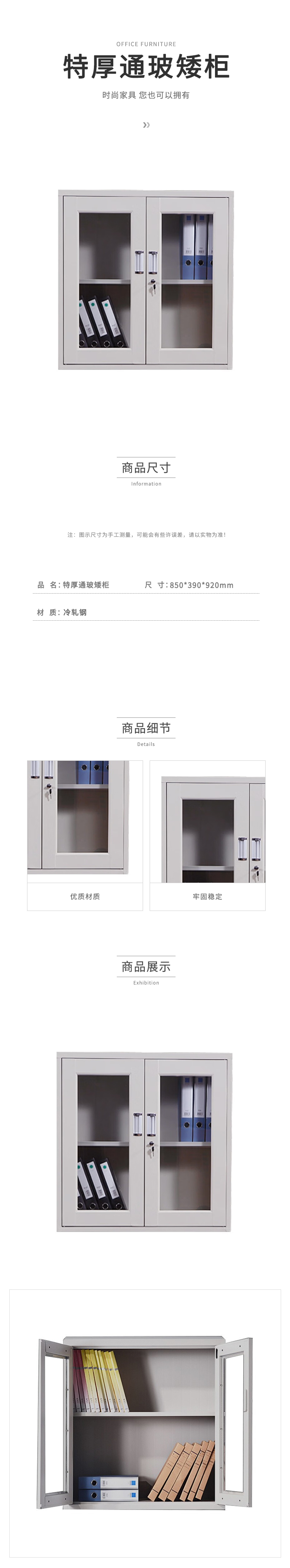 企诺 办公文件柜特厚通玻矮柜 QNGa17A1-08PA 850*390*920mm 灰白色(单位:个)