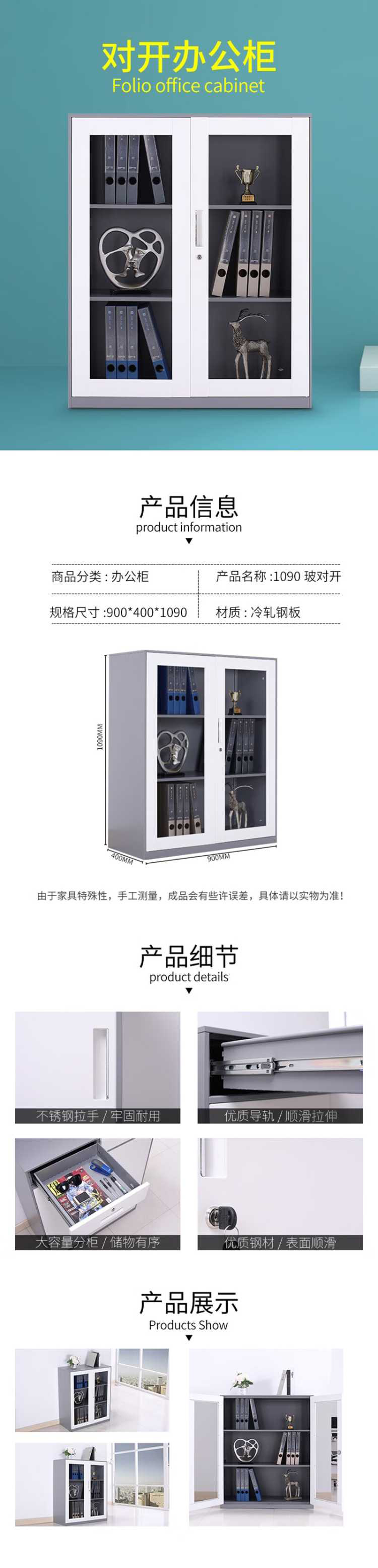 企诺 通玻对开矮柜加厚套色 QNGa19A1-05GW 900*400*1090mm 灰白色(单位:个)