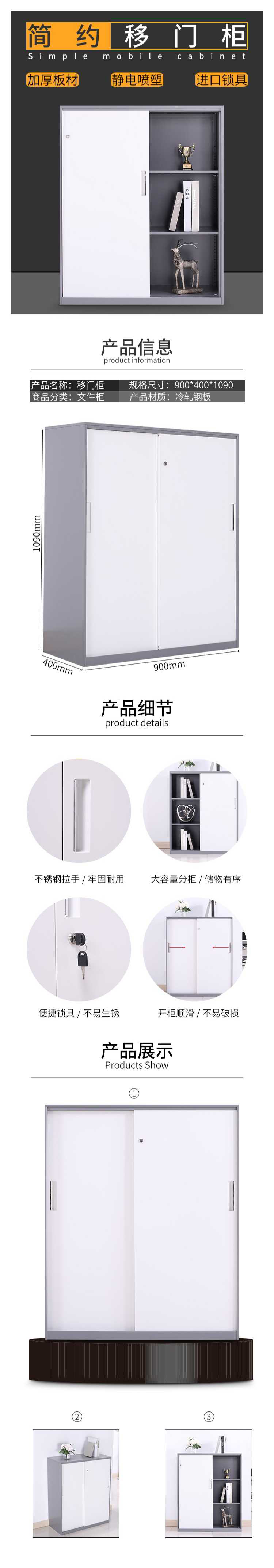 企诺 移门文件矮柜加厚套色 QNGa21A1-05GW 900*400*1090mm|0.6mm 灰白色(单位:个)