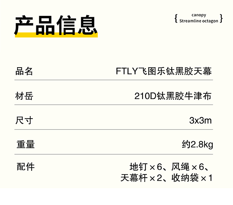 飞图乐(FTLY) 钛黑胶防晒天幕3*3m TM0201 2.8kg 流沙金(单位:个)