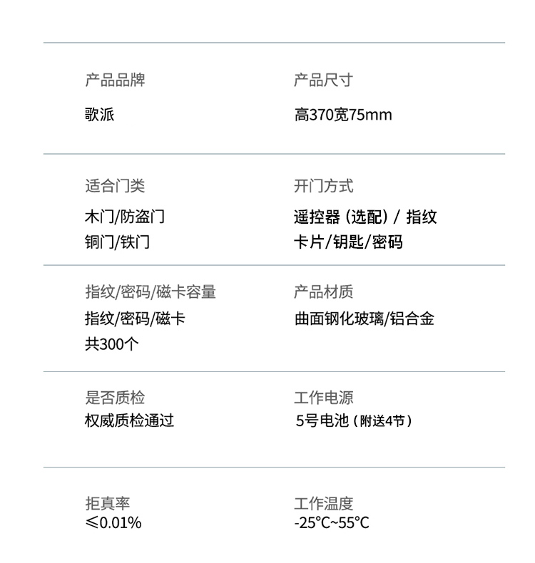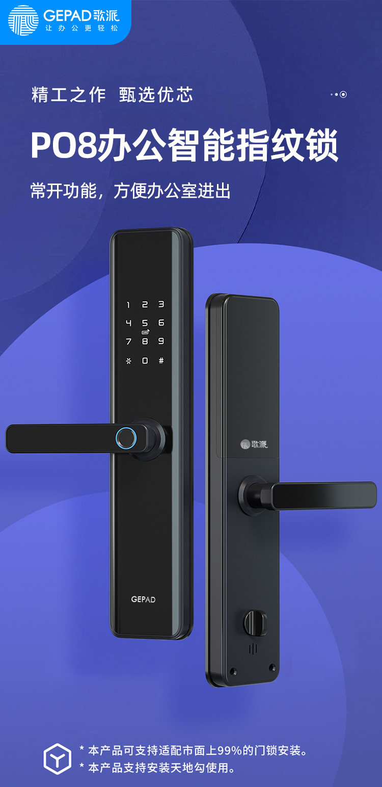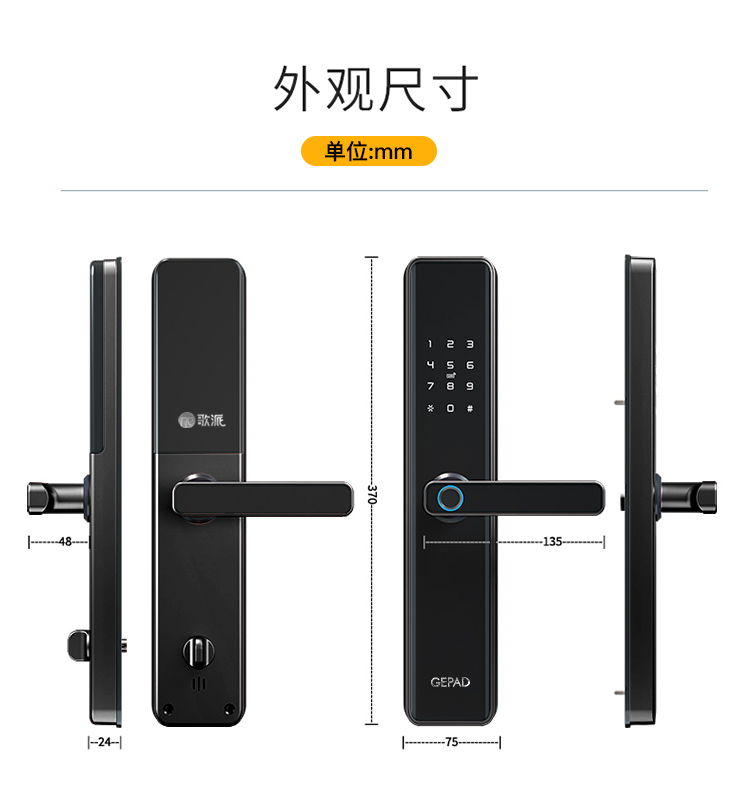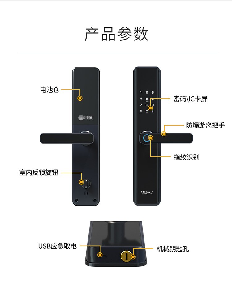 歌派(GEPAD) 智能门锁 P08 450*225*140mm 黑色(单位:套)