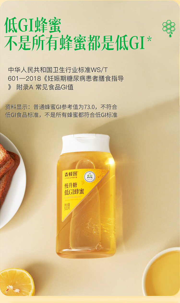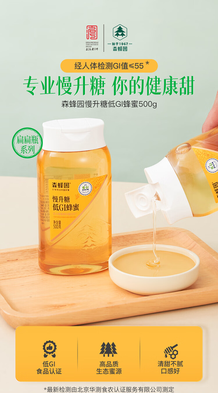 森蜂园 慢升糖扁扁挤压瓶蜂蜜 低GI蜂蜜 500g*1瓶 混色(单位:瓶)