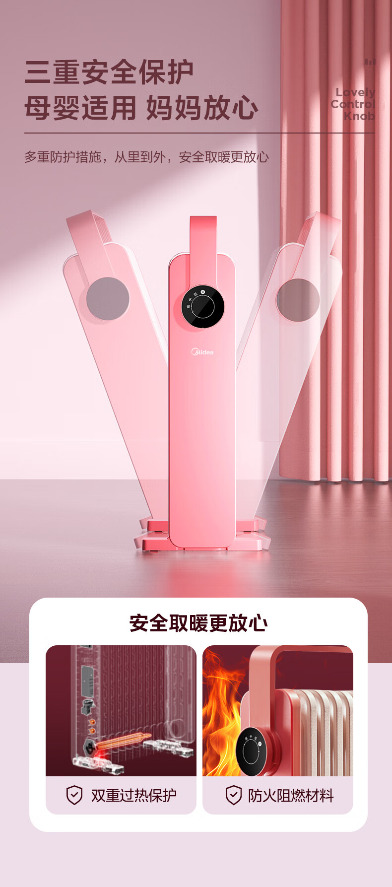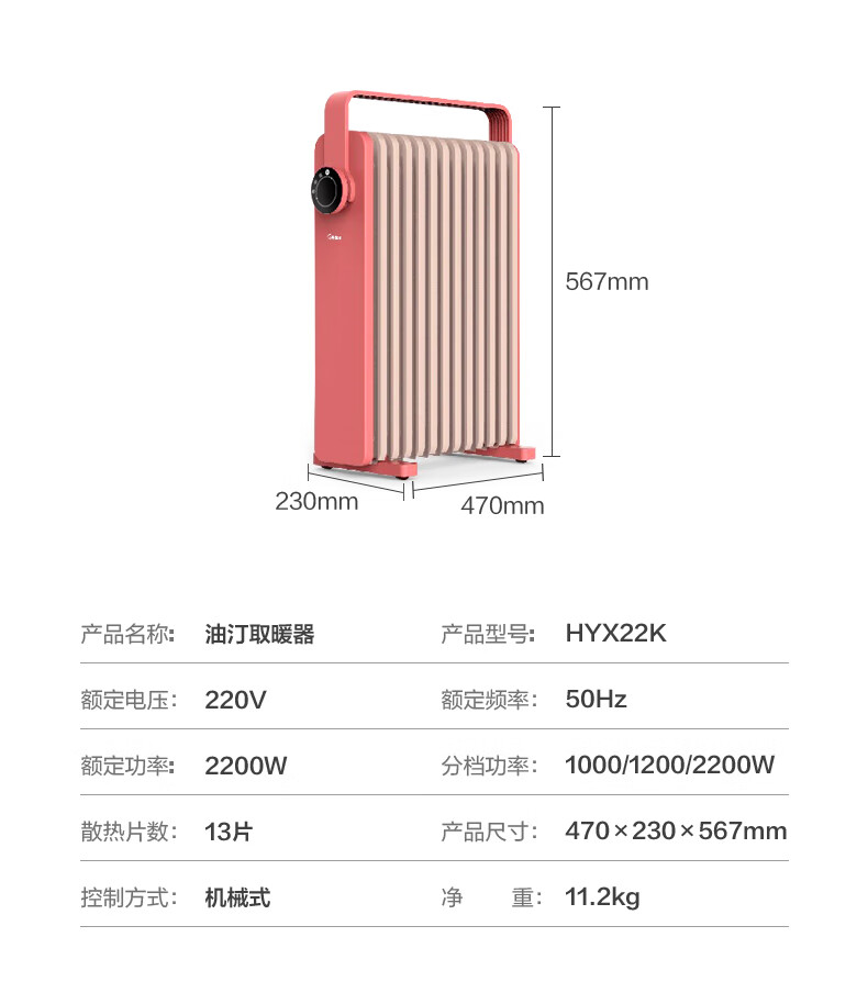 美的(Midea) 油汀取暖器 HYX22K 2200W 粉色(单位:台)