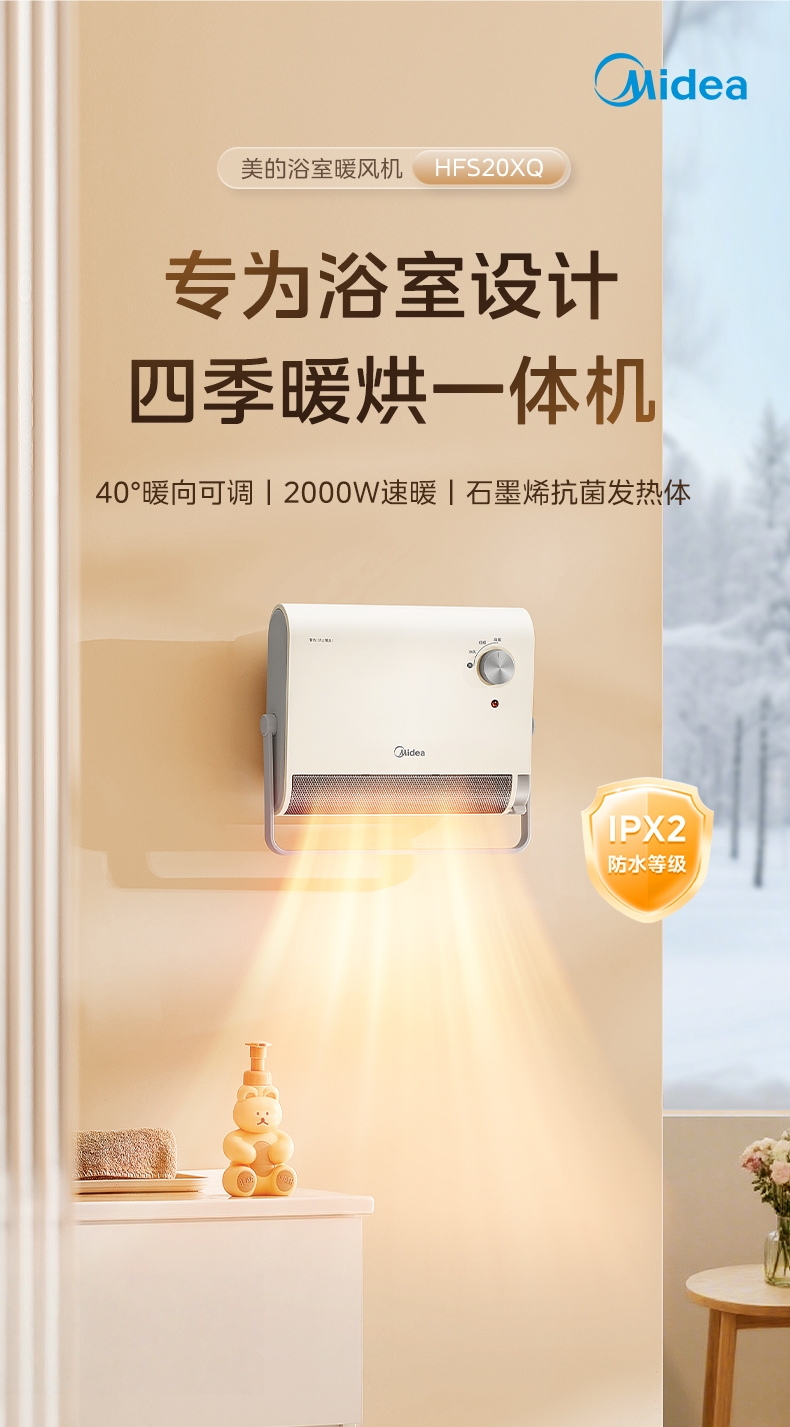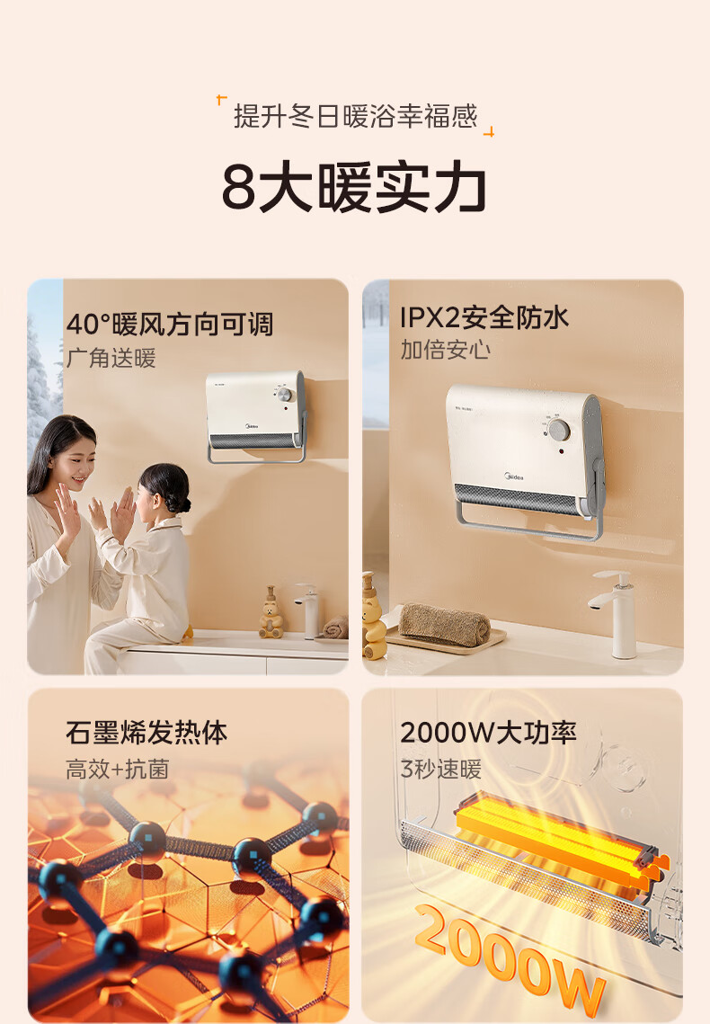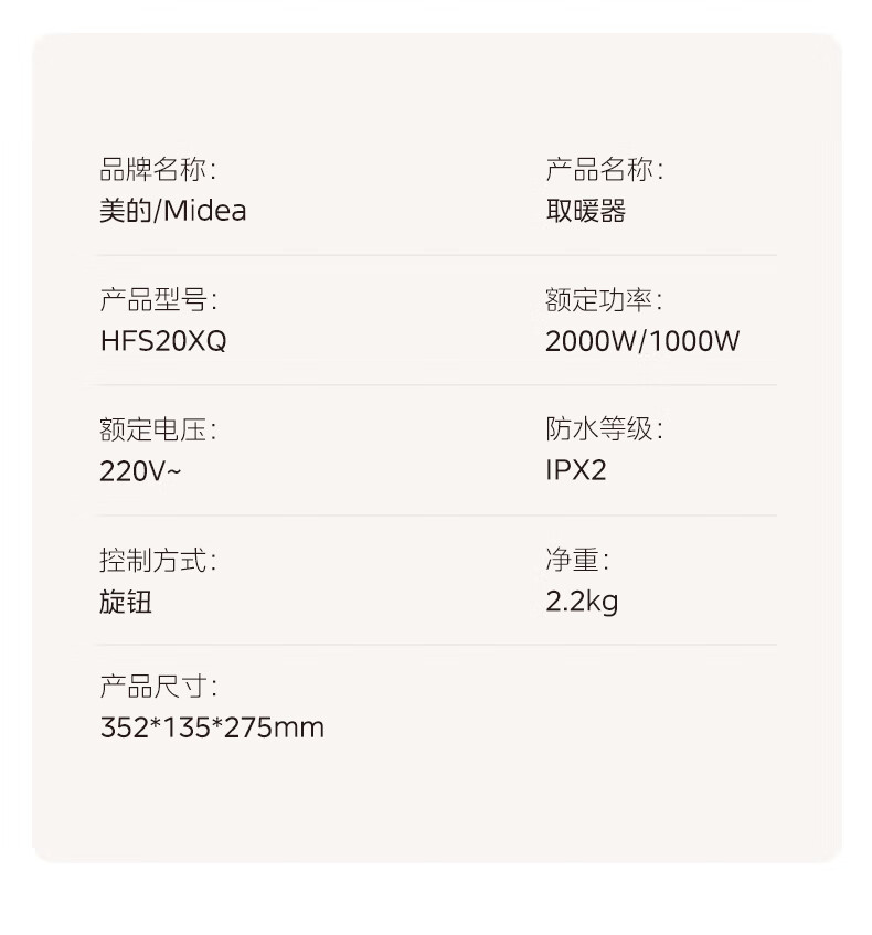 美的(Midea) 壁挂暖风机 HFS20XQ 2000W 浅杏(单位:台)
