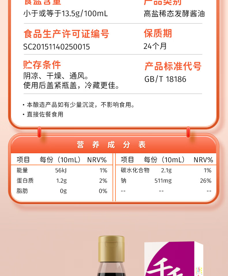 千禾 调味 有机酱油 210mL*2 混色(单位:组)