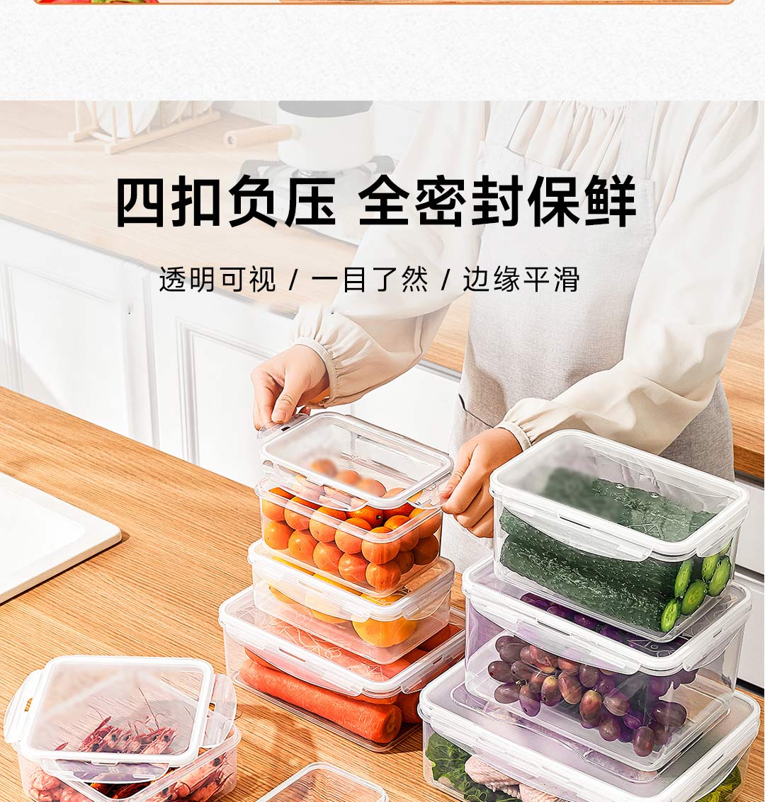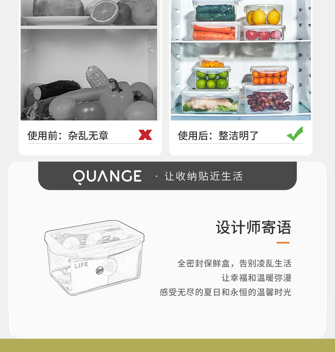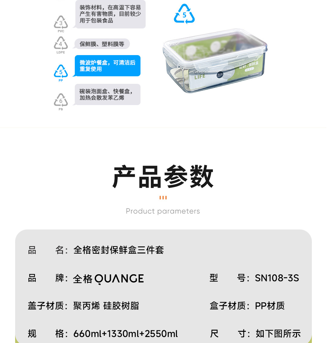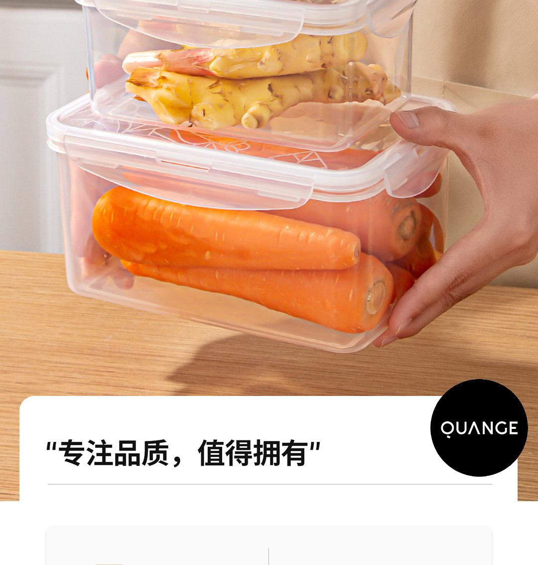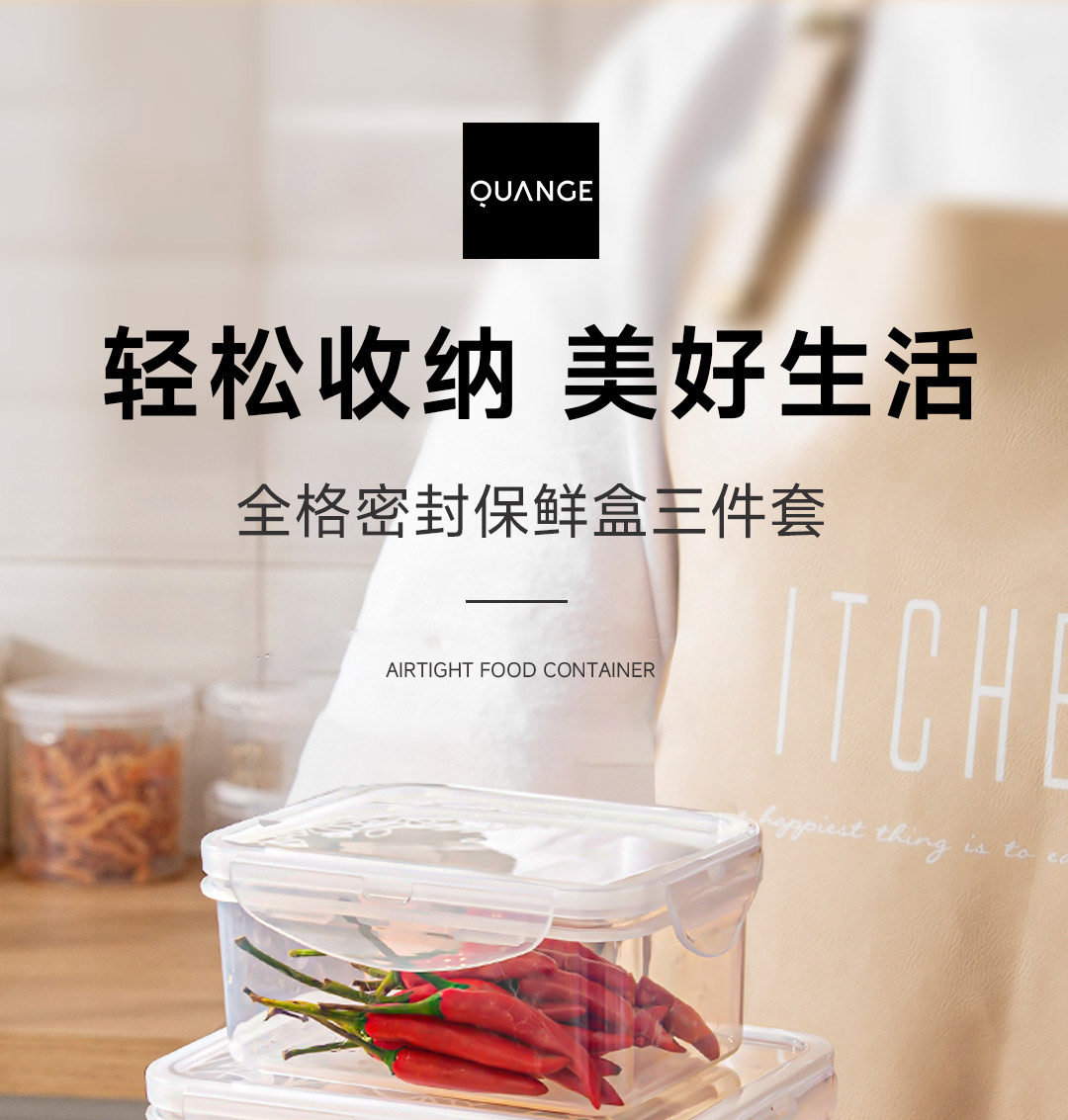 全格(Quange) 密封保鲜盒三件套 SN108-3S 660ml+1330ml+2550ml 透明(单位:套)