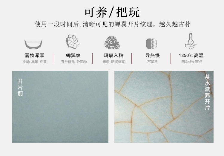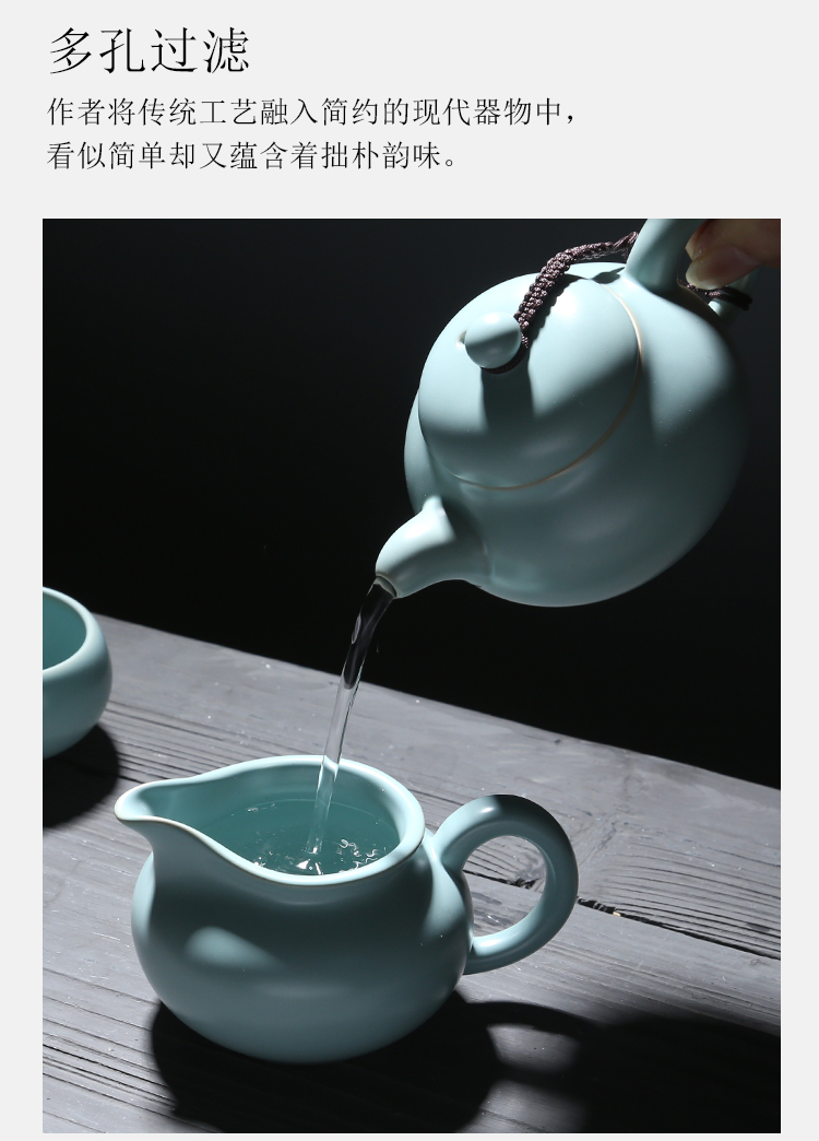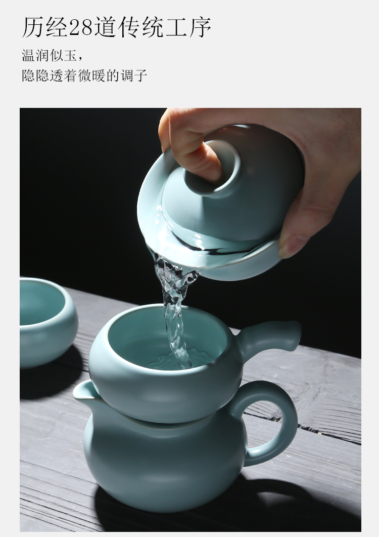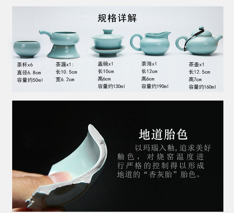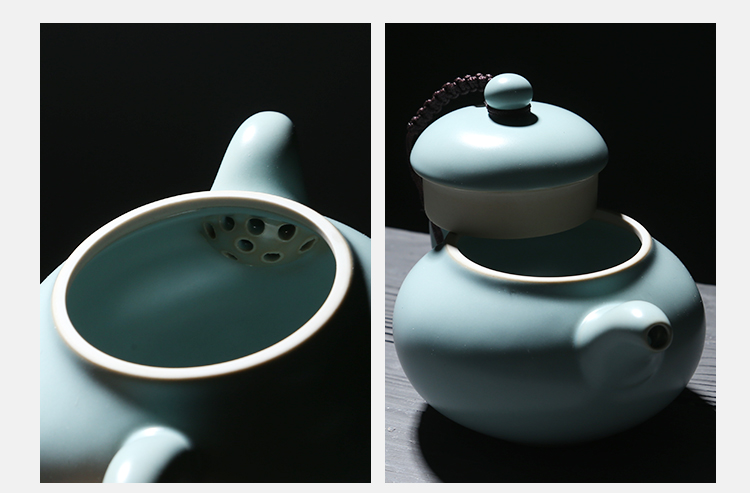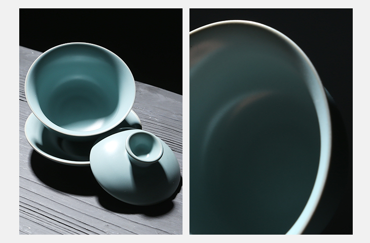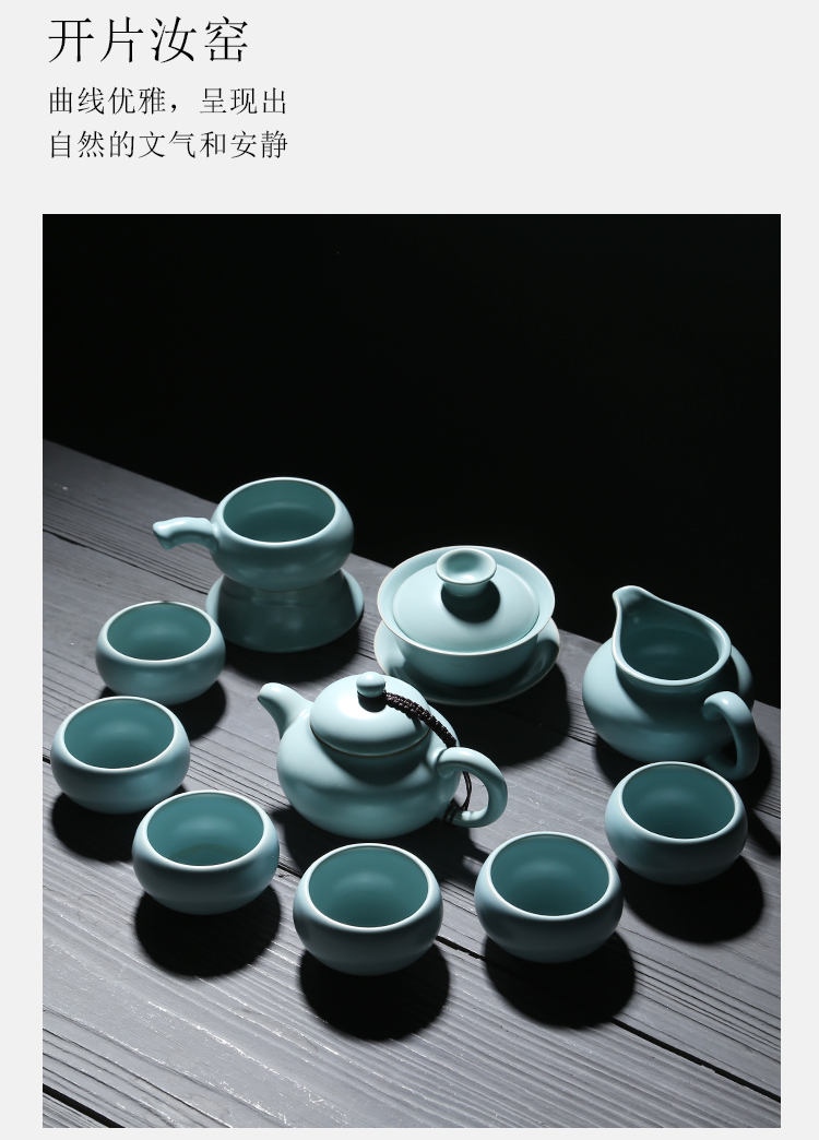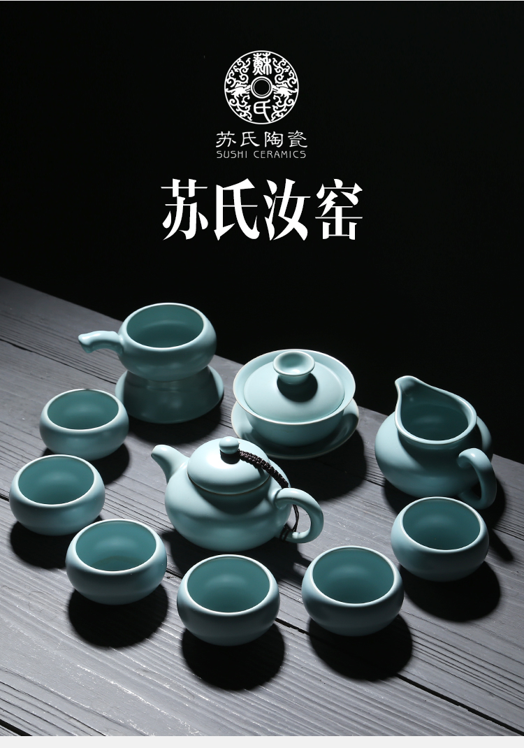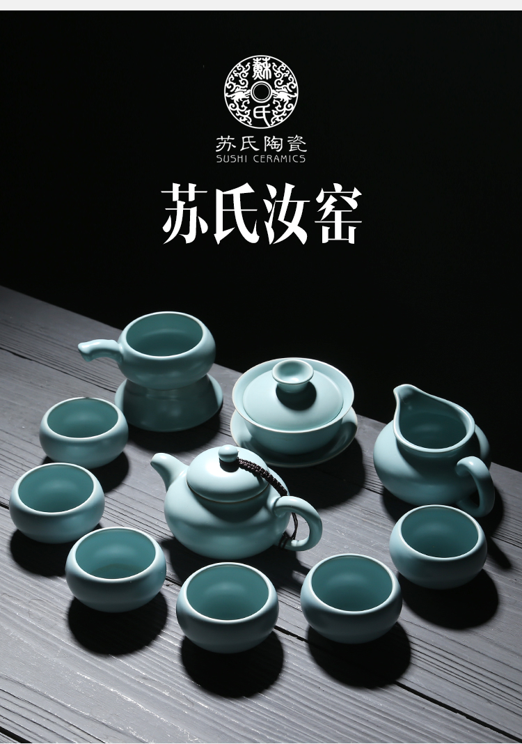 苏氏陶瓷(SUSHI CERAMICS)J0102 汝窑茶具套装茶壶盖碗茶杯开片可养(单位:套) 天空之境