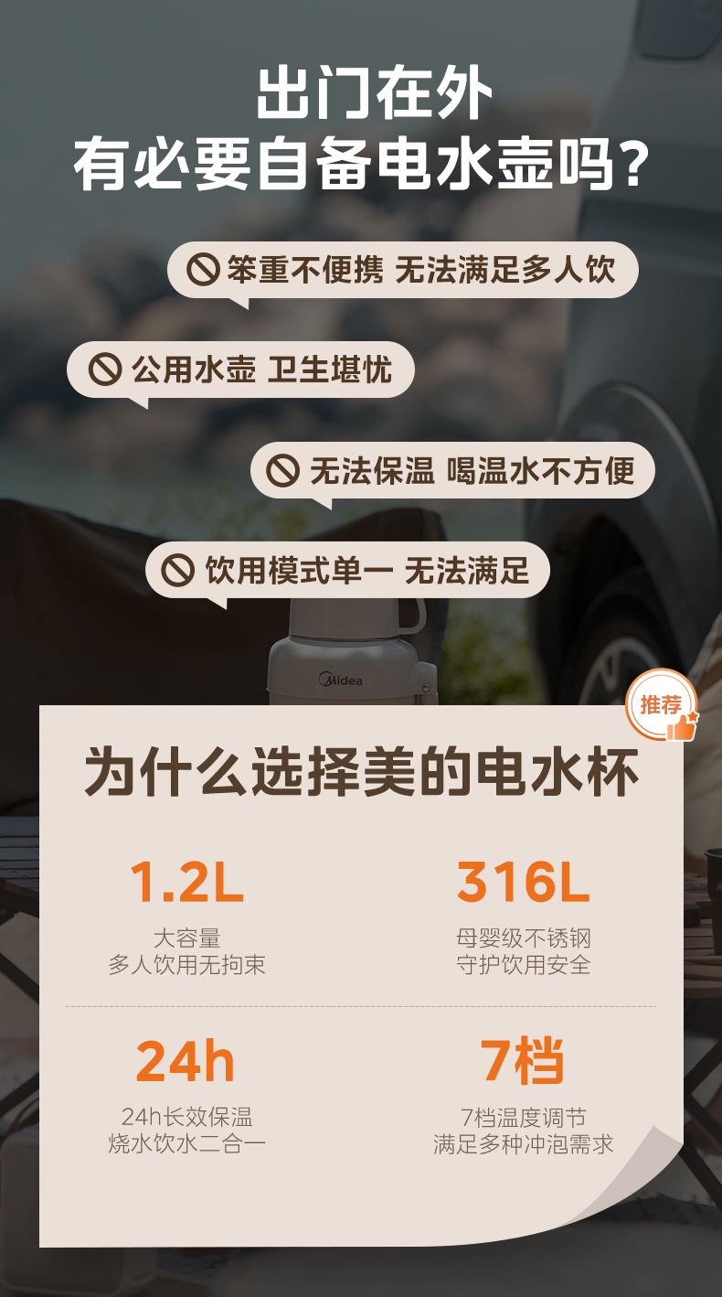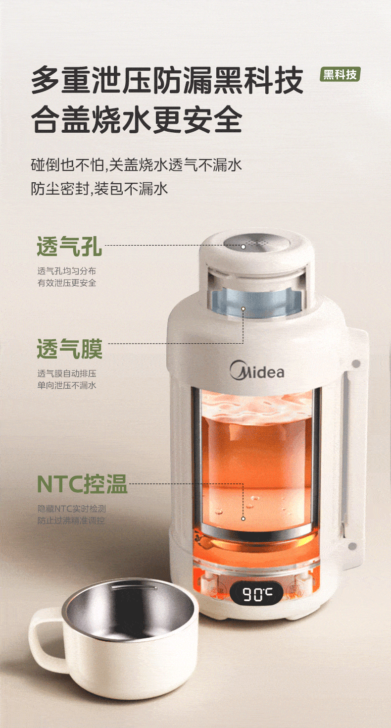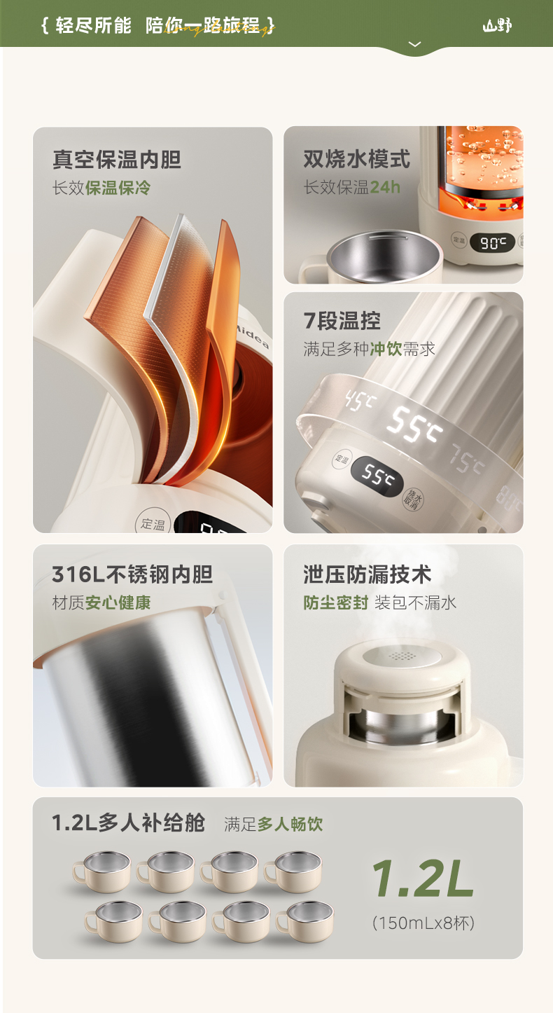 美的(Midea) 电热水壶 MK-DB12X18-PRO 1.2L 浅杏(单位:台)