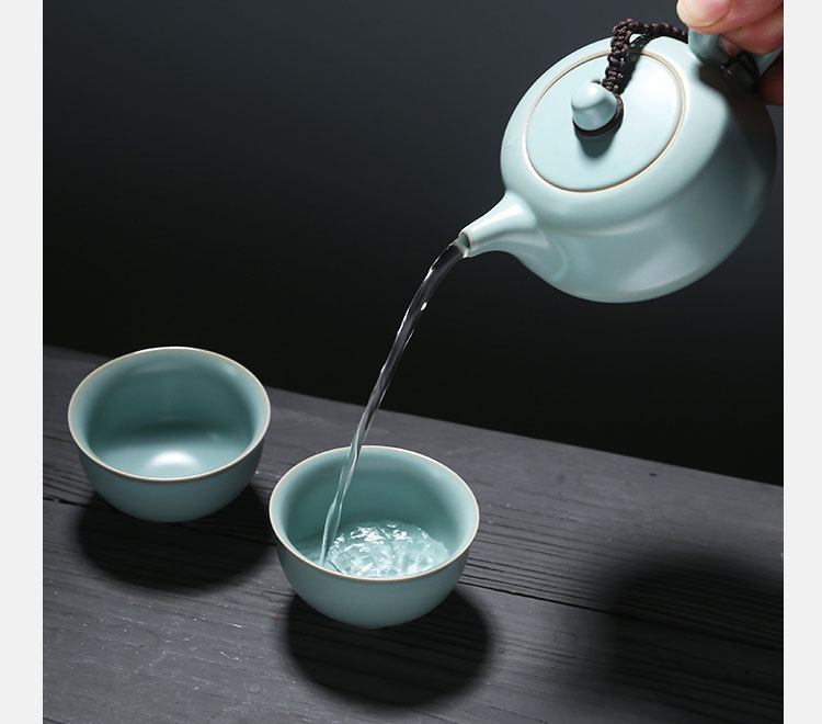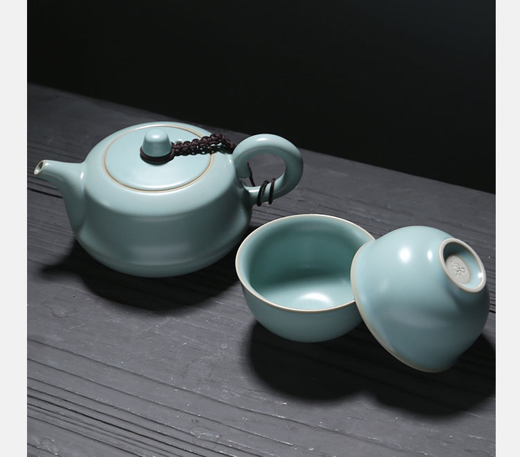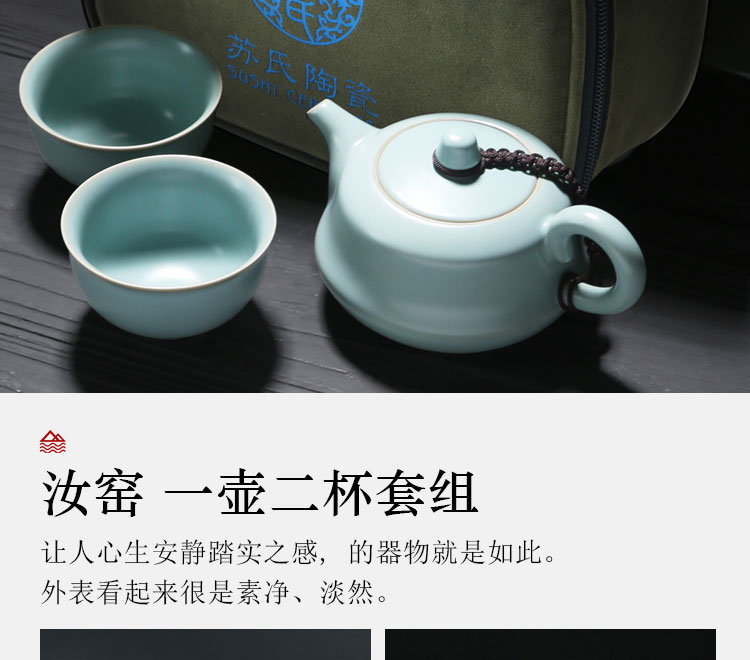 苏氏陶瓷(SUSHI CERAMICS)J0137旅行茶具汝窑忠义茶壶两杯便携装(单位:套) 天空之境