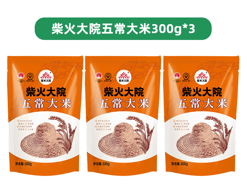 柴火大院 五常大米 东北 300g/袋*3 灰橙色(单位:组)