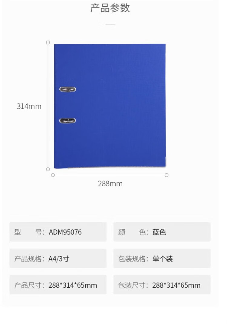 晨光(M&G) 快劳夹 ADM94747B A4 3寸 单个装 蓝色(单位:个)