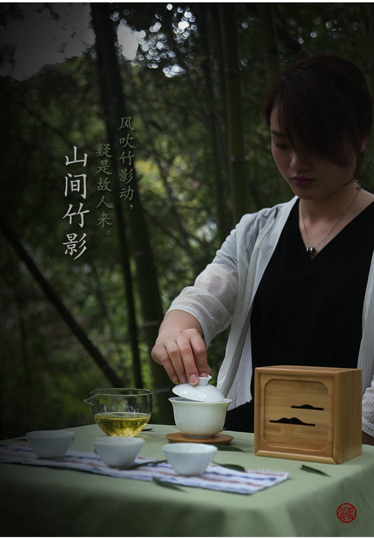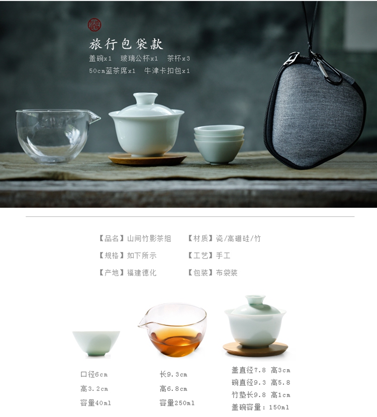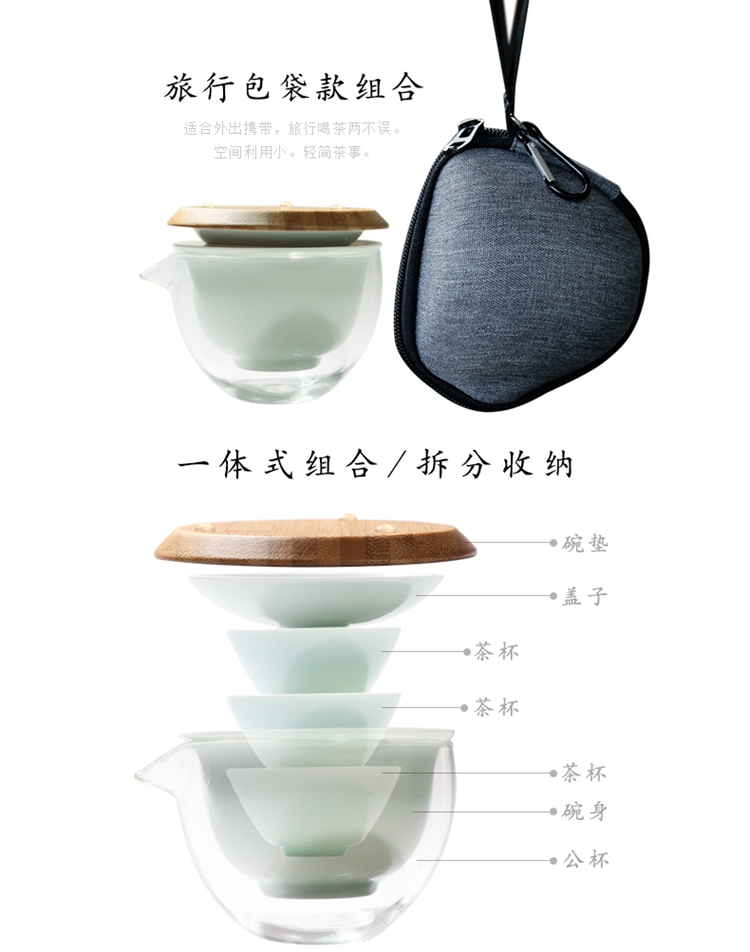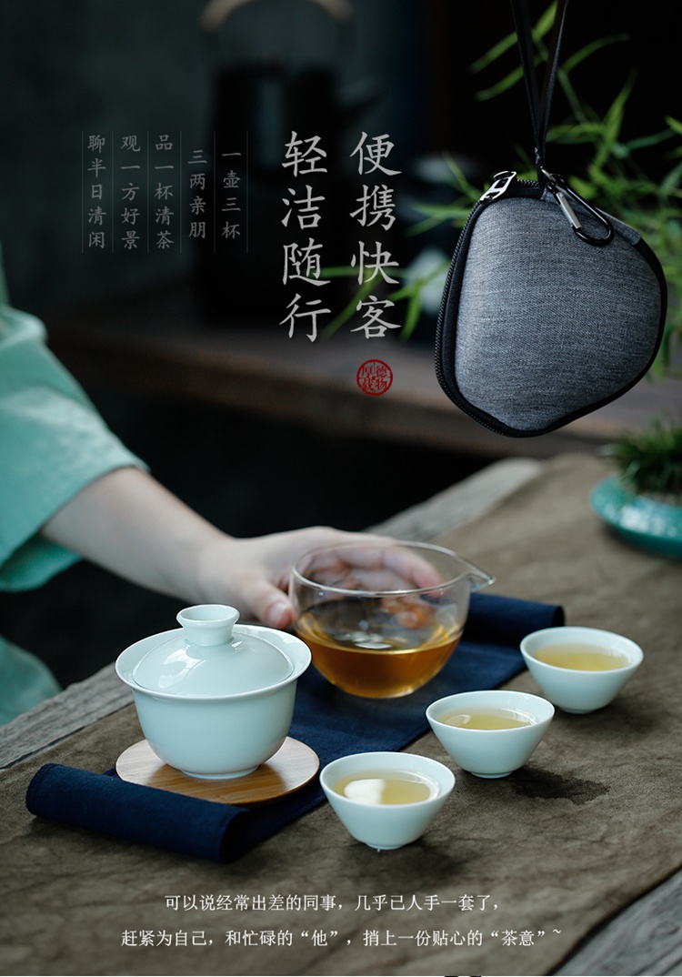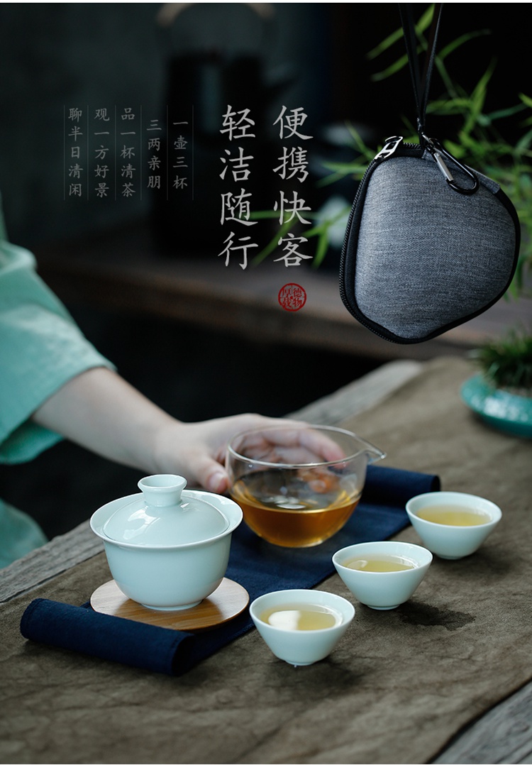 苏氏陶瓷(SUSHI CERAMICS)J0201旅行茶具山闻竹影青瓷快客杯便携装(单位:套) 天蓝色