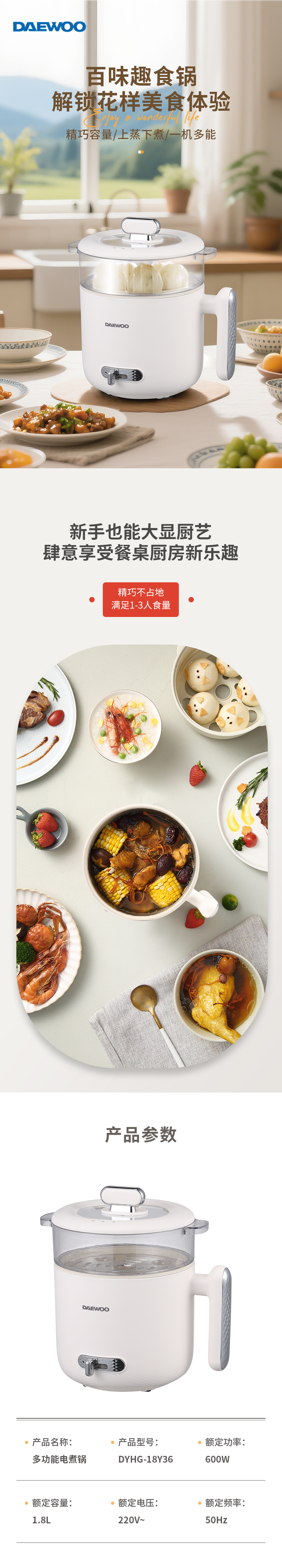 大宇(DAEWOO) 电煮锅 DYHG-18Y36 1.8L 白色(单位:台)