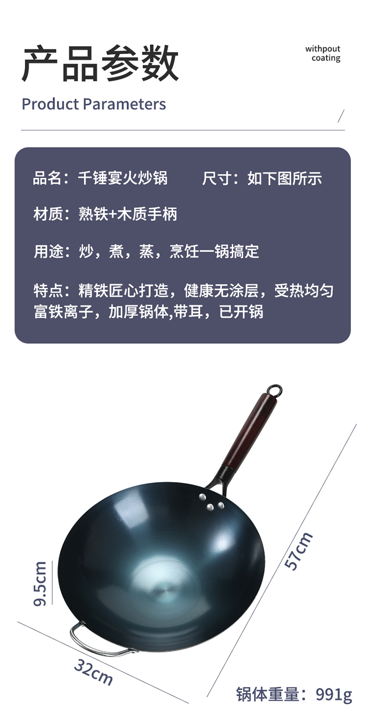 华典世通(HDST) 千锤宴火炒锅 QC-25021 32CM直径 藏青色(单位:套)