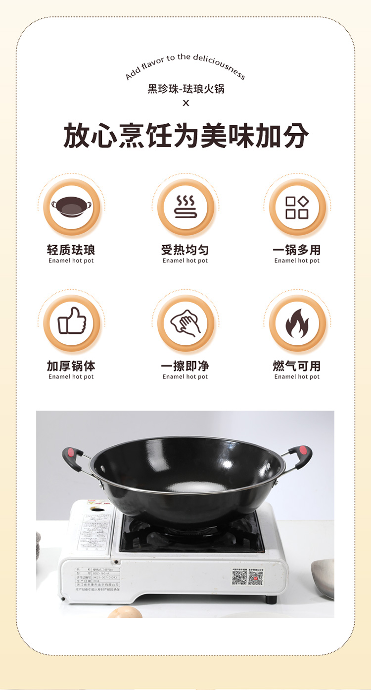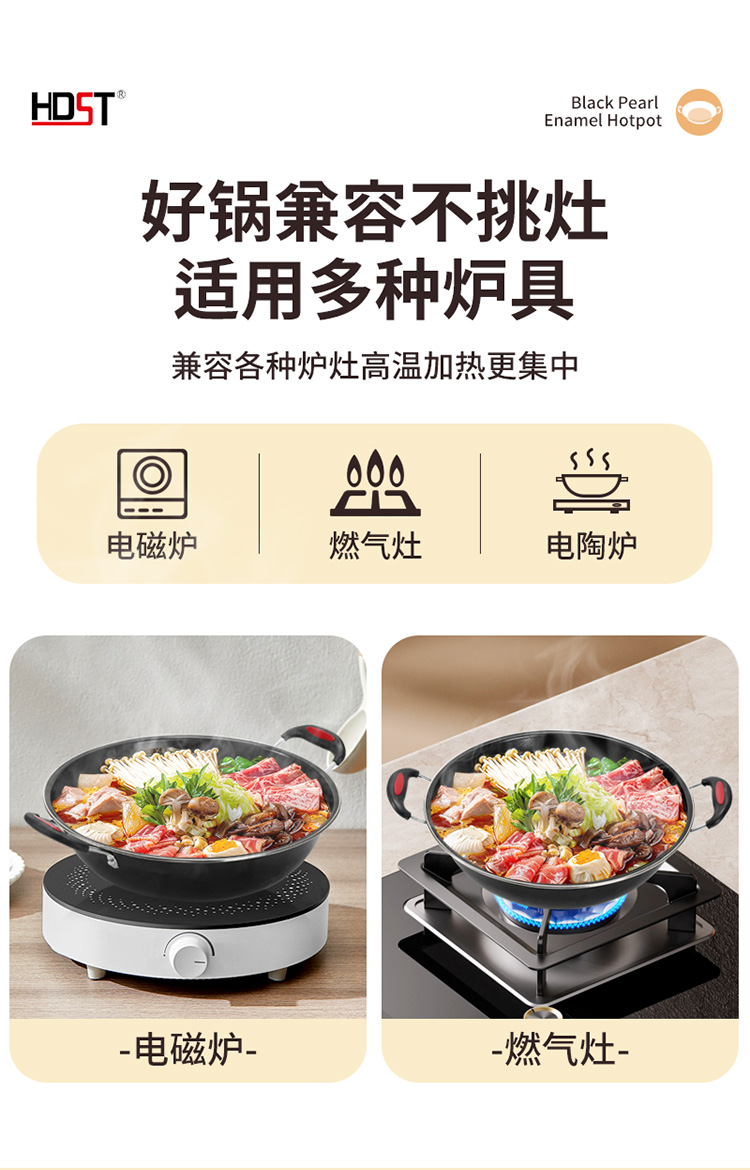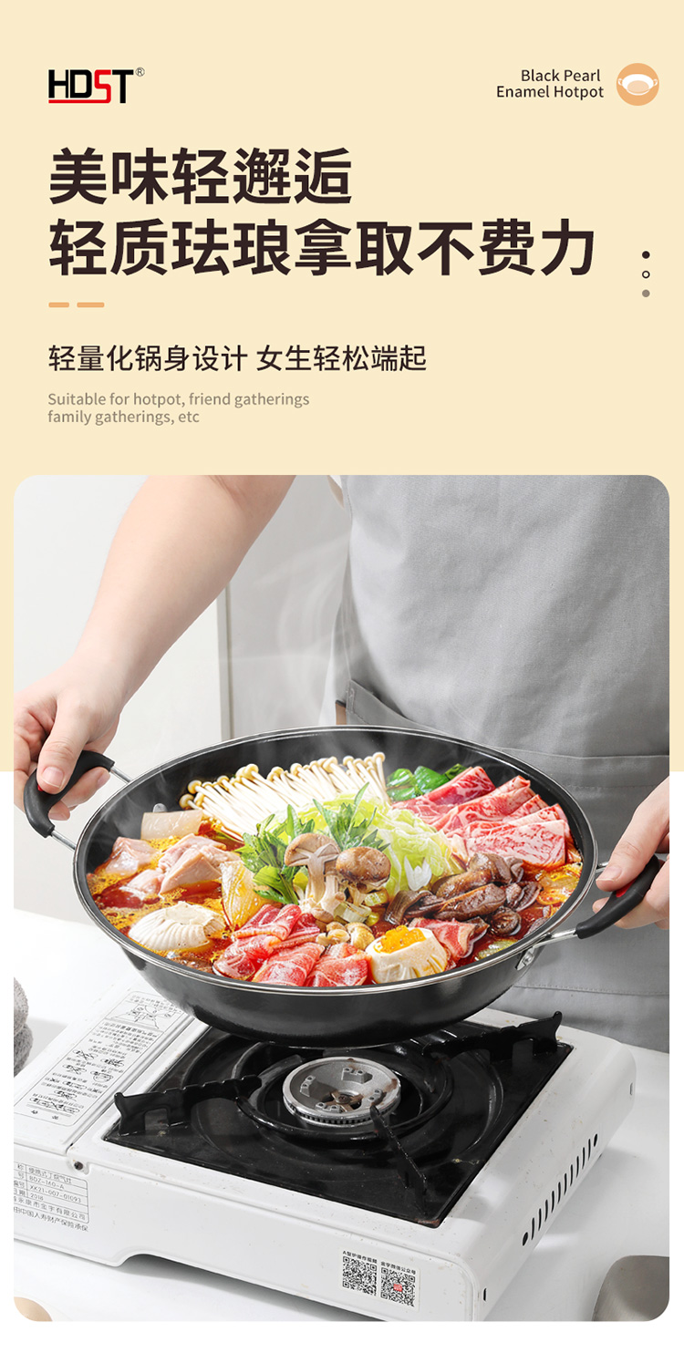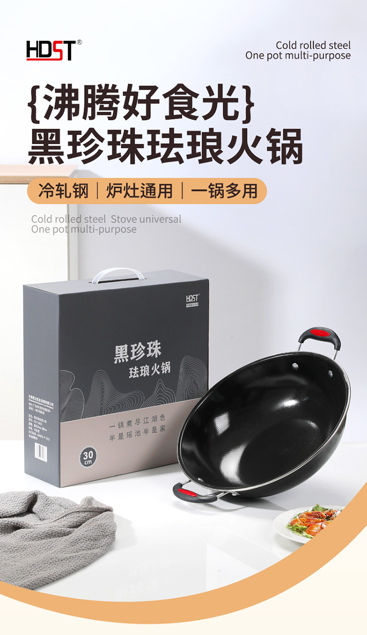 华典世通(HDST) 黑珍珠珐琅火锅 HZZ-25023 直径30cm,高8cm 曜石黑(单位:套)