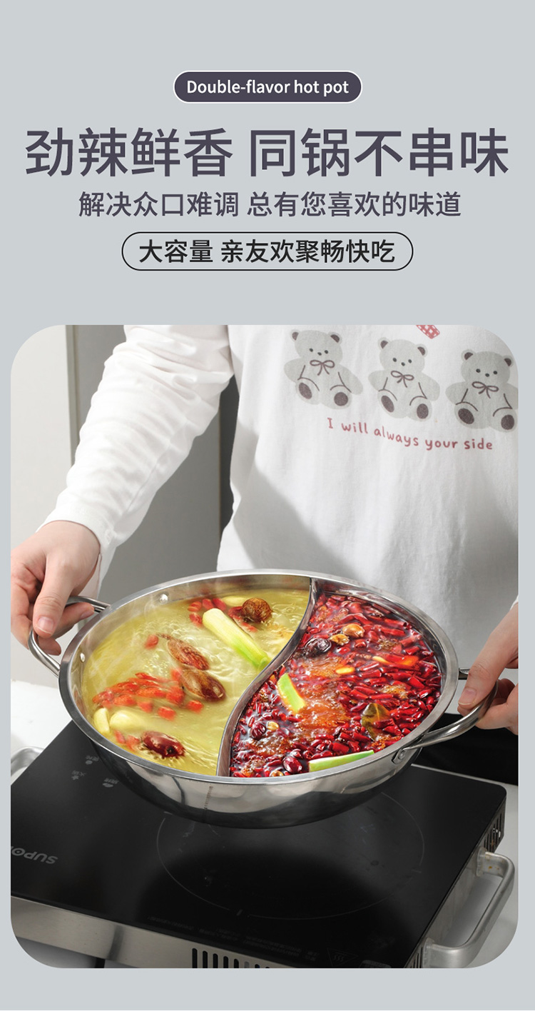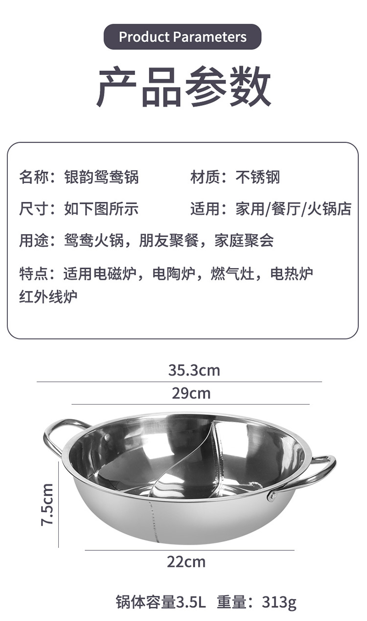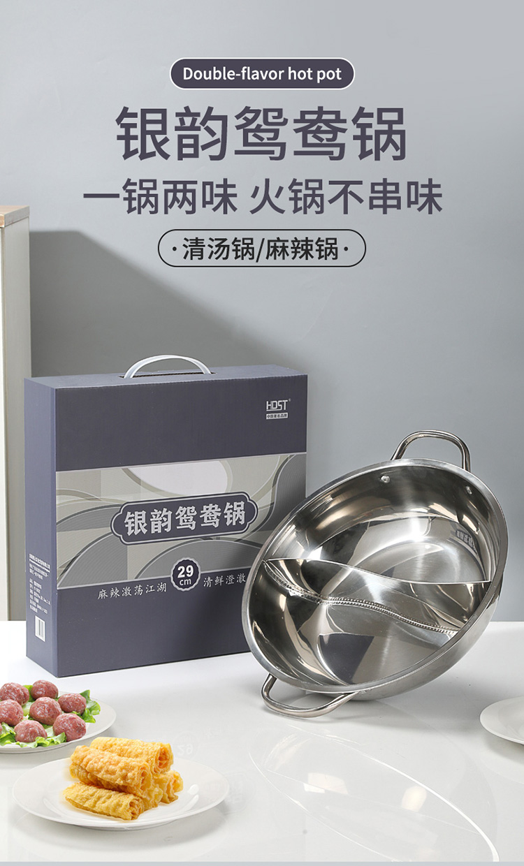 华典世通(HDST) 银韵鸳鸯锅 YY-25022 直径29cm, 高7.5CM,3.5L 不锈钢色(单位:套)