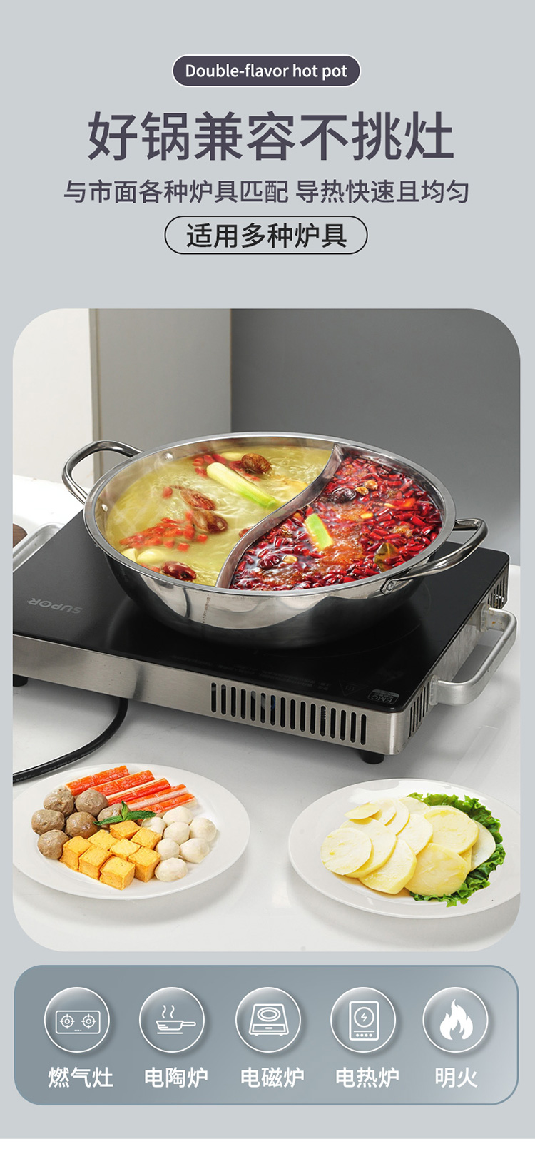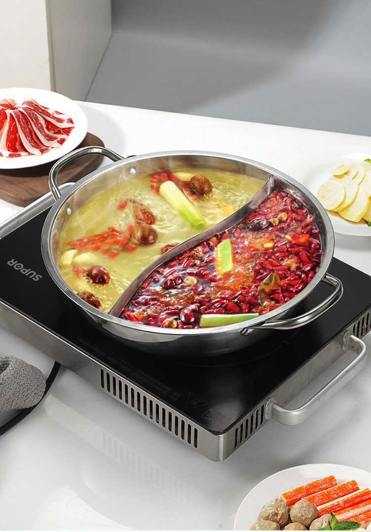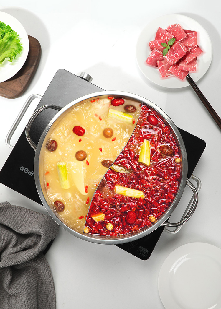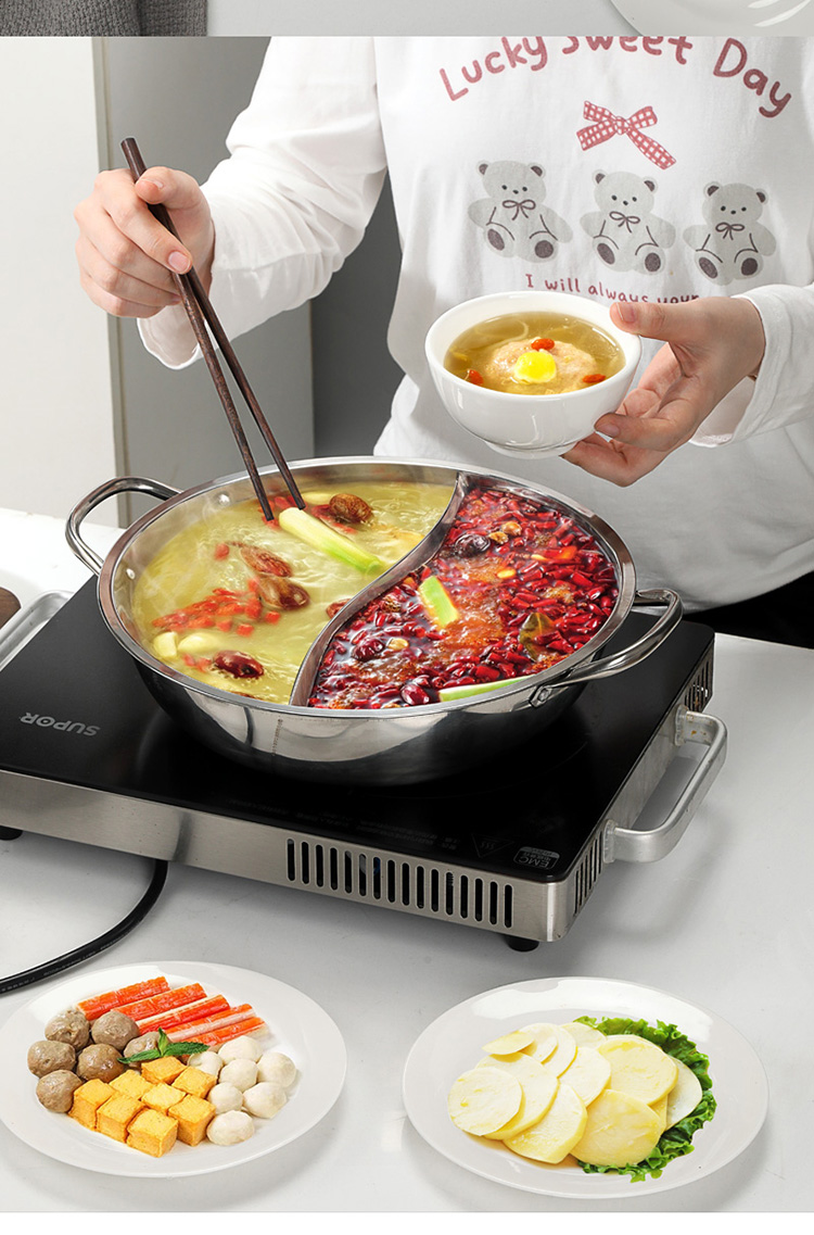华典世通(HDST) 银韵鸳鸯锅 YY-25022 直径29cm, 高7.5CM,3.5L 不锈钢色(单位:套)