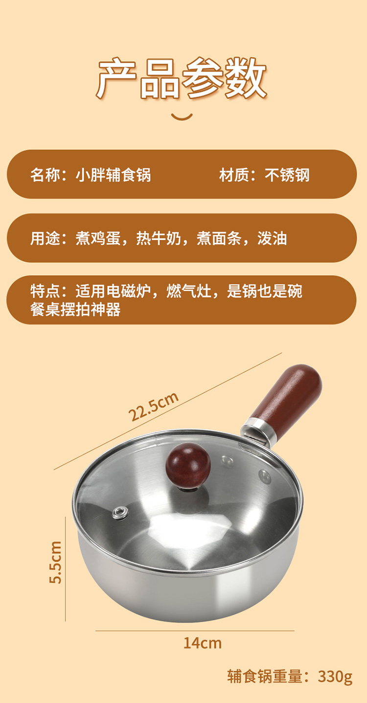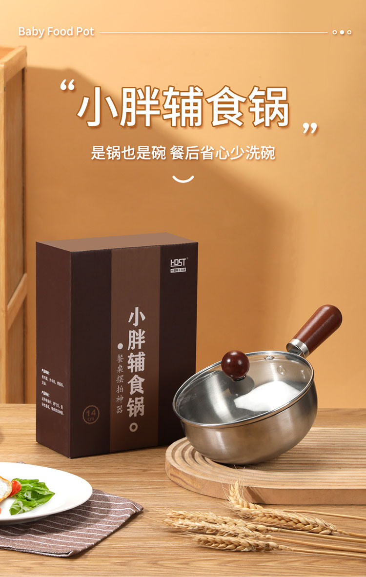华典世通(HDST) 小胖辅食锅 XB-25025 直径14cm,高5.5CM 不锈钢色(单位:套)
