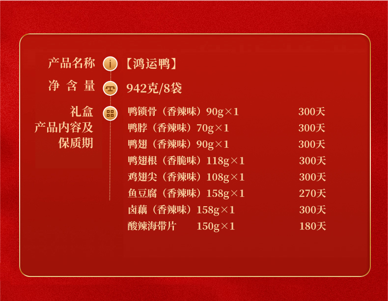 小胡鸭 鸿运鸭 肉食组合 礼盒 917g 灰橙色(单位:盒)