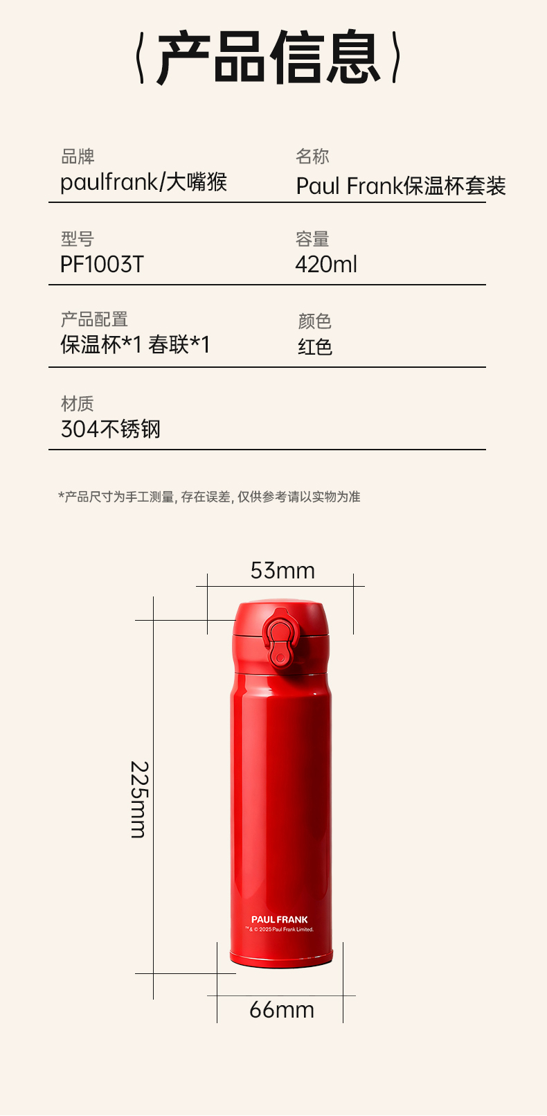 大嘴猴(Paul Frank) 保温杯套装 PF1003T 420ML 红色(单位:套)