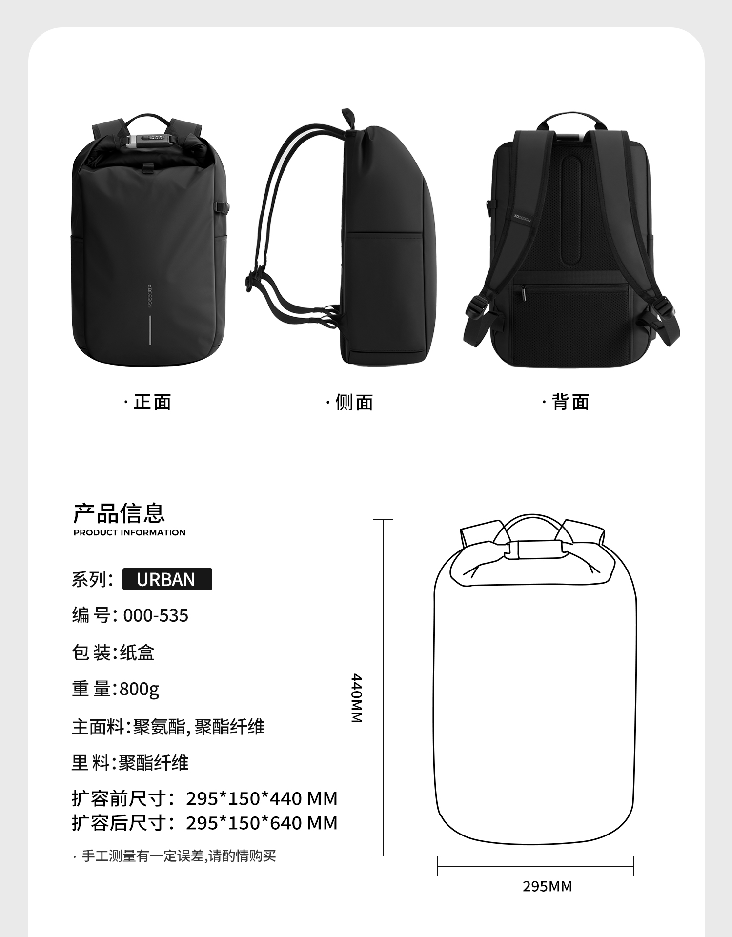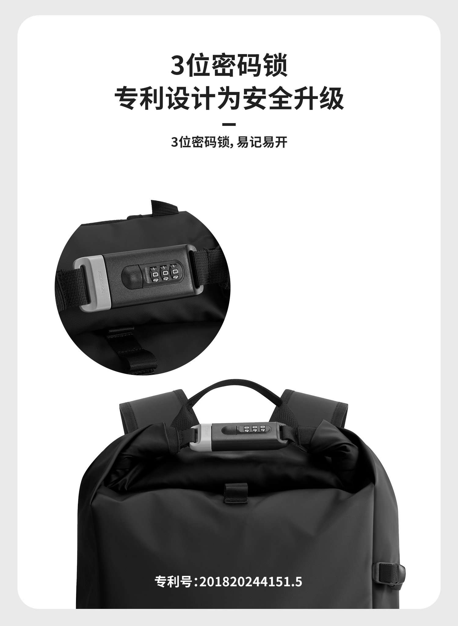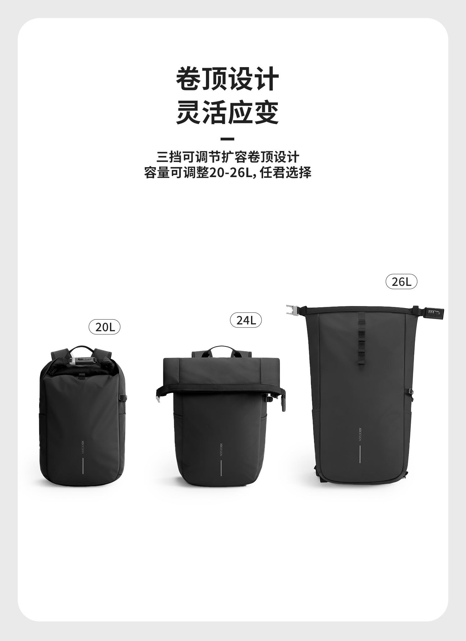 XDDESIGN 爱思迪 极途·锁界 防水多功能卷顶背包 P706.2801 29*15*44 cm 经典黑(单位:个)