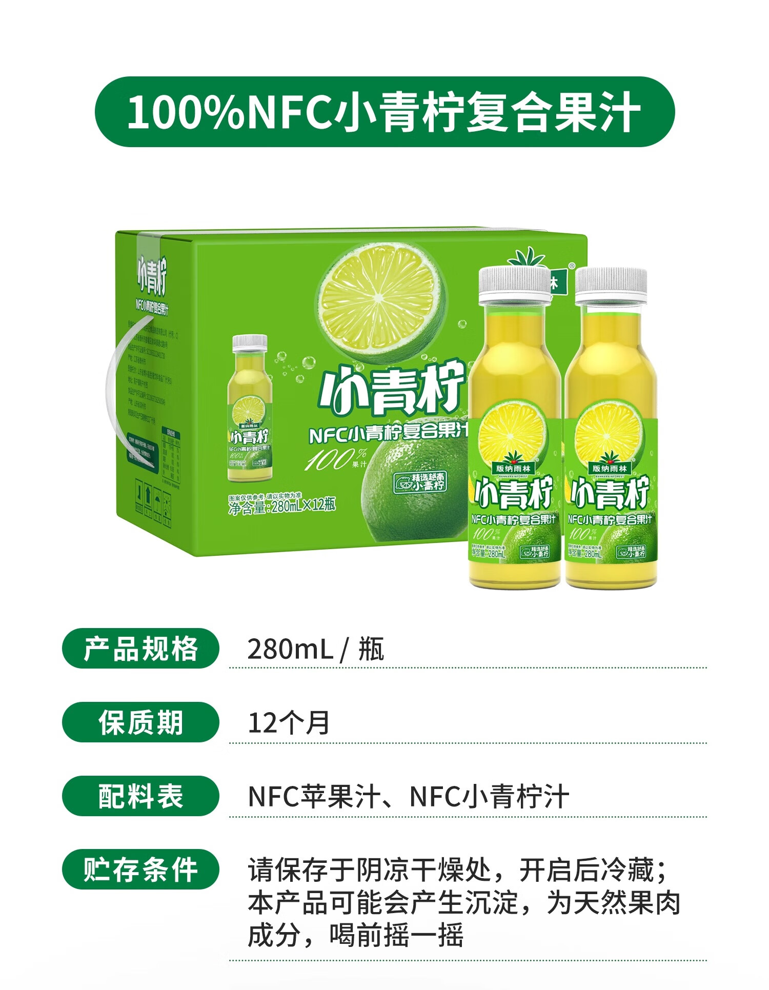 版纳雨林 NFC小青柠汁 礼盒 280ml*12 橘色(单位:盒)