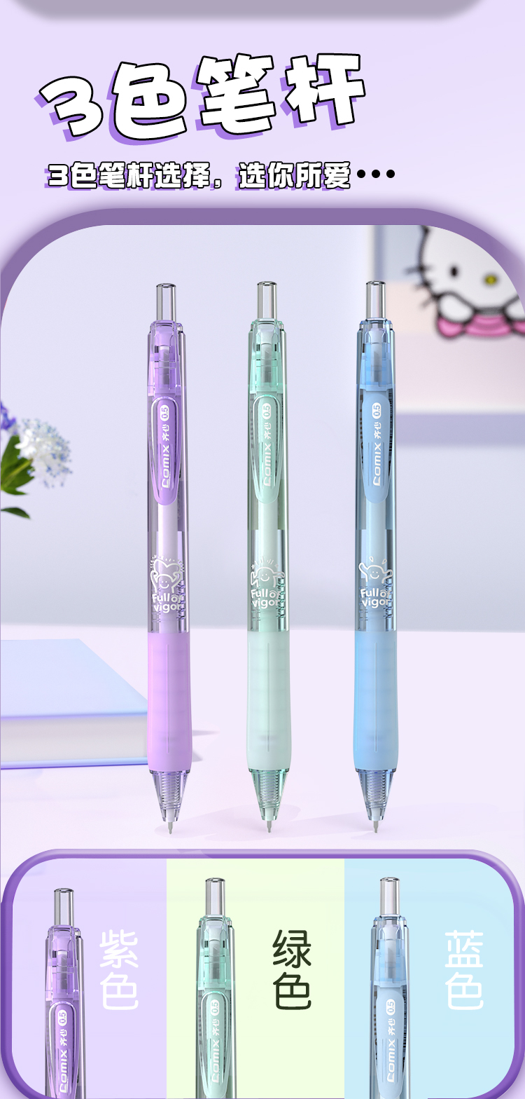 齐心(COMIX) 元气满满速干按动中性笔 0.5mm YQGP144 5支 混色(单位:套)