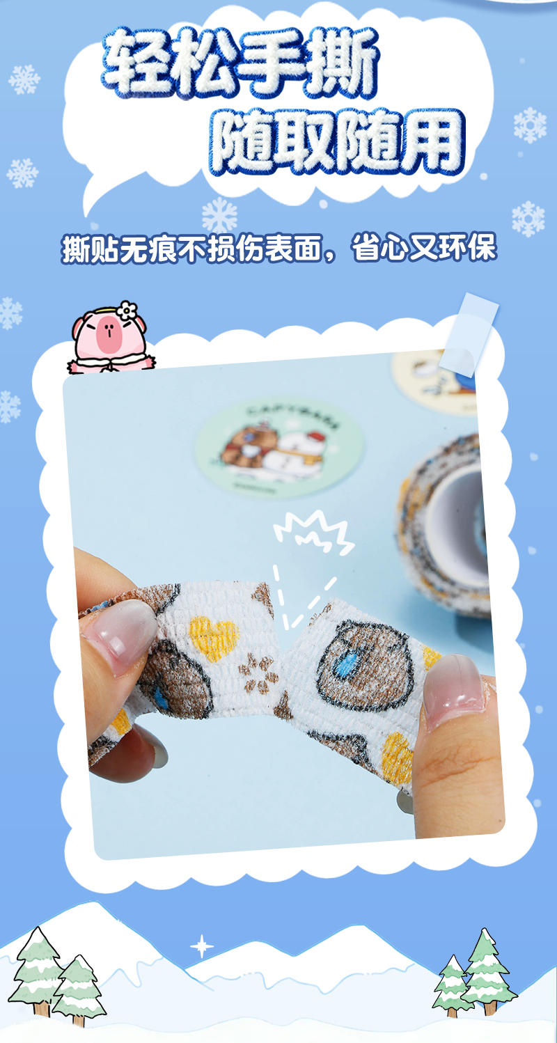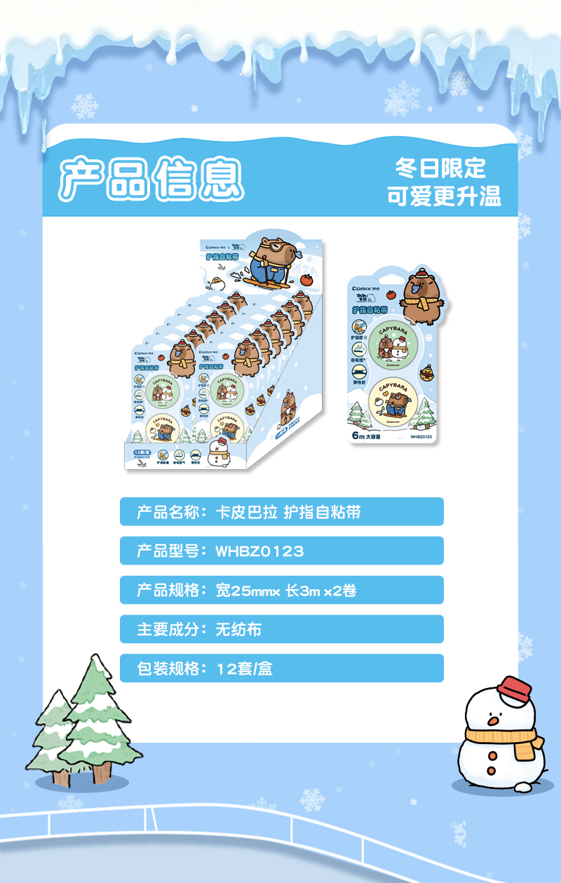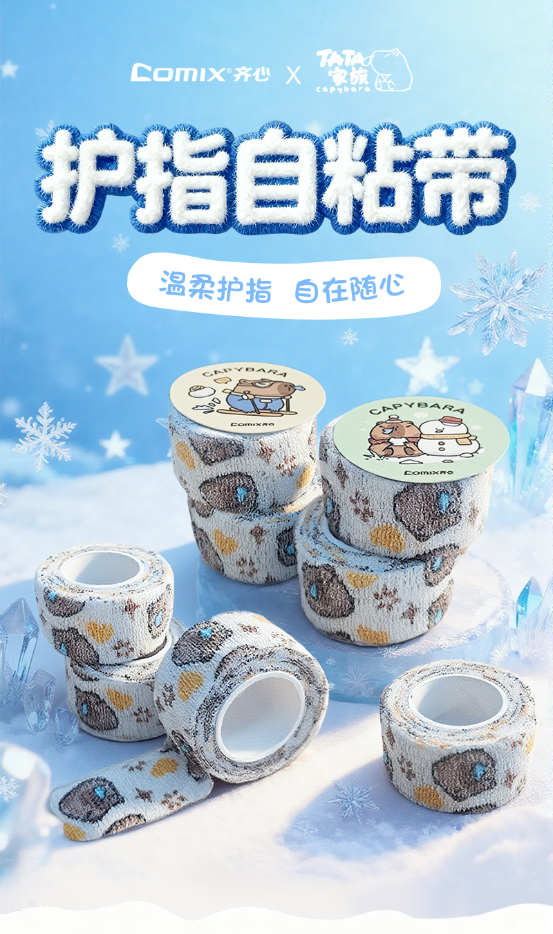 齐心(COMIX) 卡皮巴拉冬日绮梦护指自粘带 WHBZ0123 3M*2卷 混色(单位:盒)