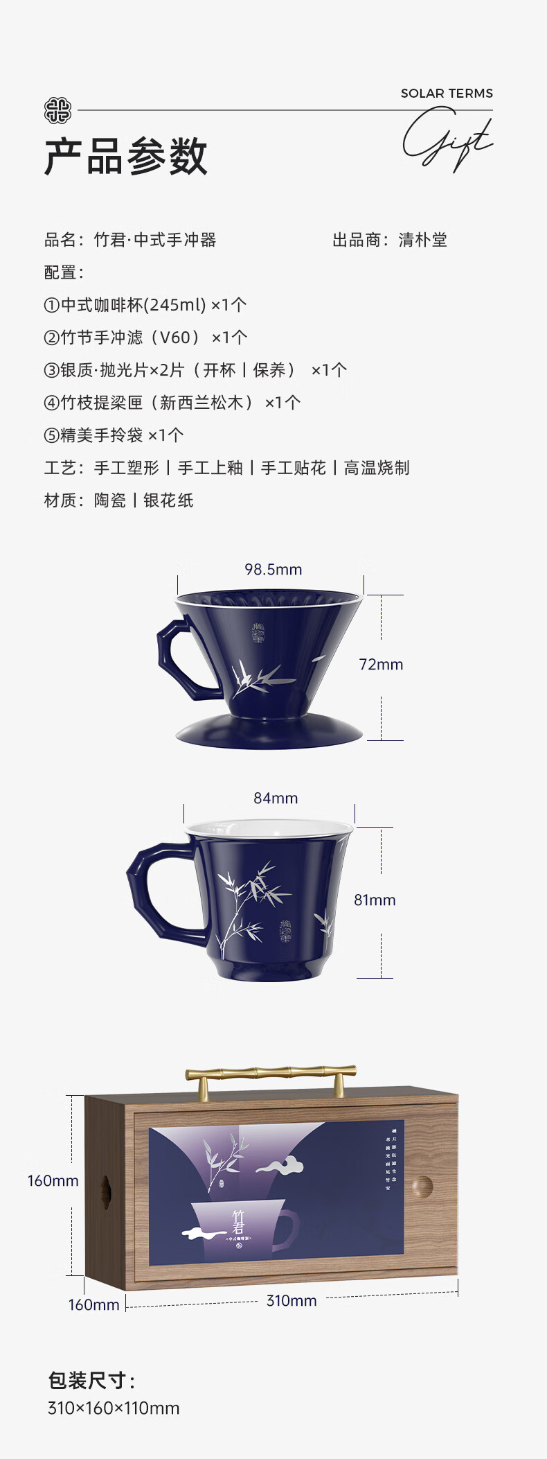 清朴堂 竹君手冲 中式咖啡具套装 310*160*110mm 混色(单位:盒)