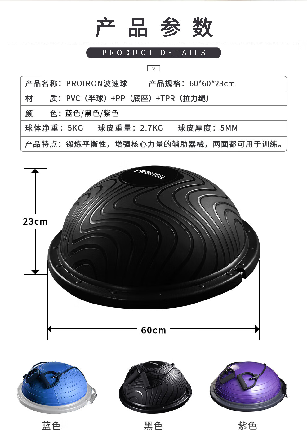 普力艾(PROIRON) 防爆波速球 PRO-YJ04-3 直径60cm 蓝色(单位:个)