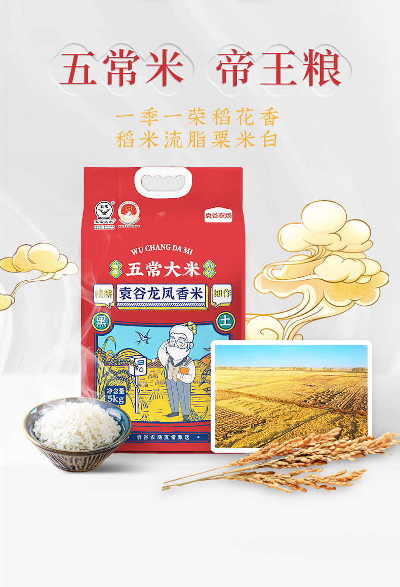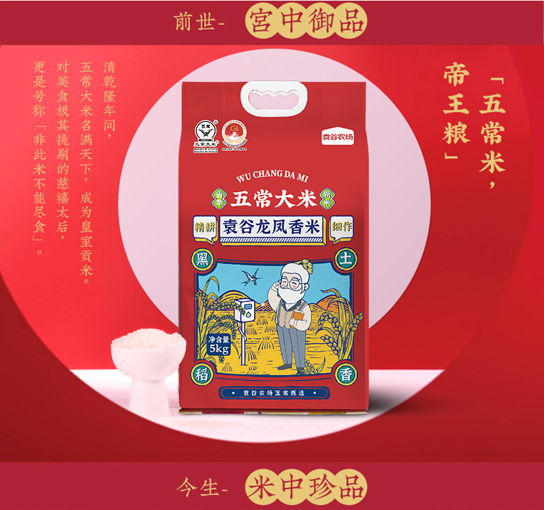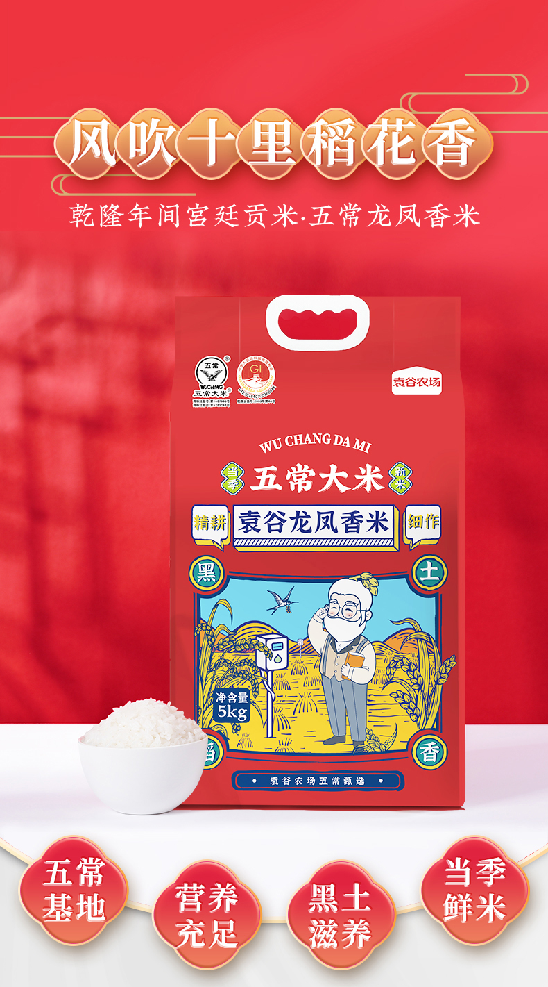 袁谷 五常大米龙凤香米 五优稻四号 真空包装5KG*1 红色(单位:袋)