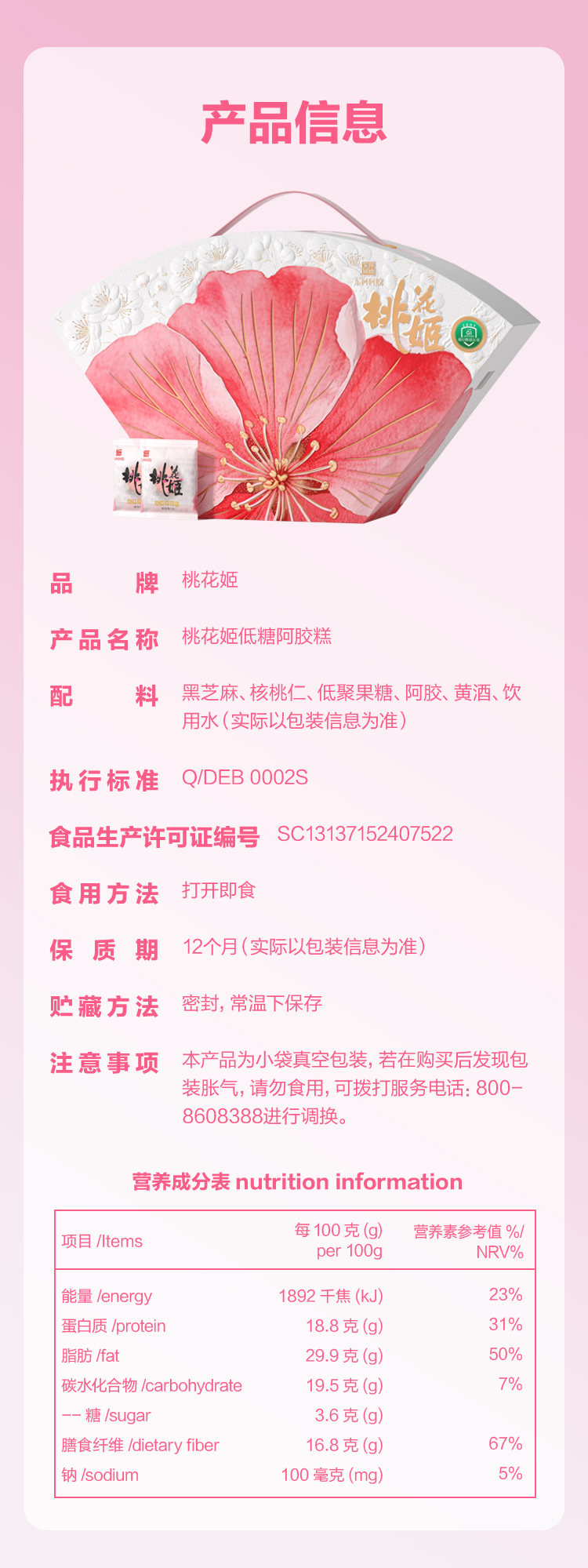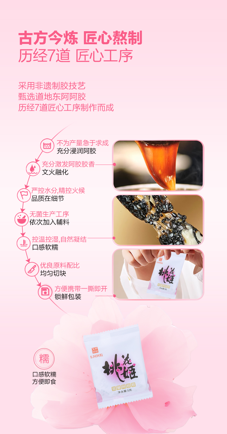 东阿阿胶 桃花姬低糖阿胶糕 胶香醇厚 320g(5g*64块) 白色(单位:盒)