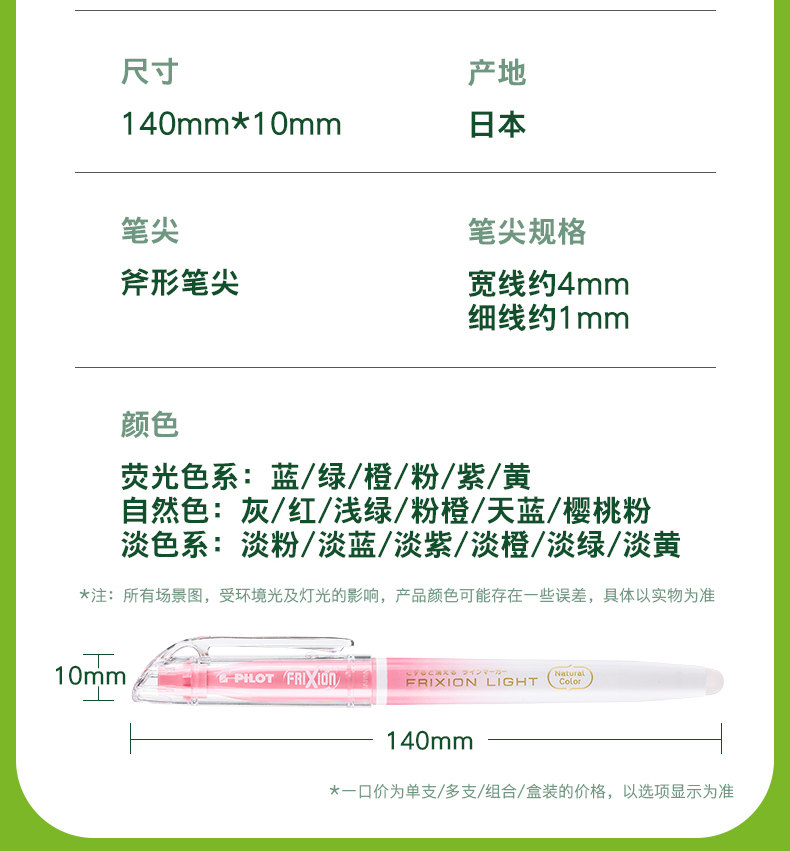 百乐(PILOT) 摩磨擦-荧光笔 SW-FL-G 140*10mm 绿色(单位:支)