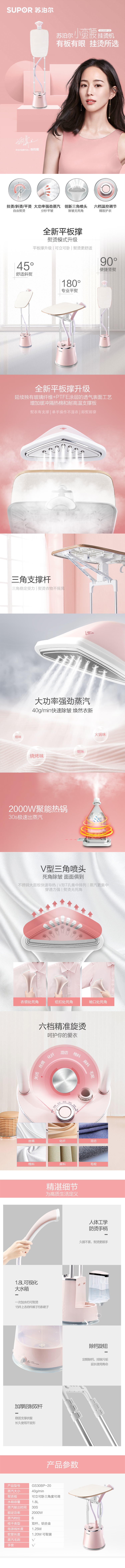 苏泊尔(SUPOR) 家用挂烫机 GS30BP-20 2000W 粉红色(单位:个)