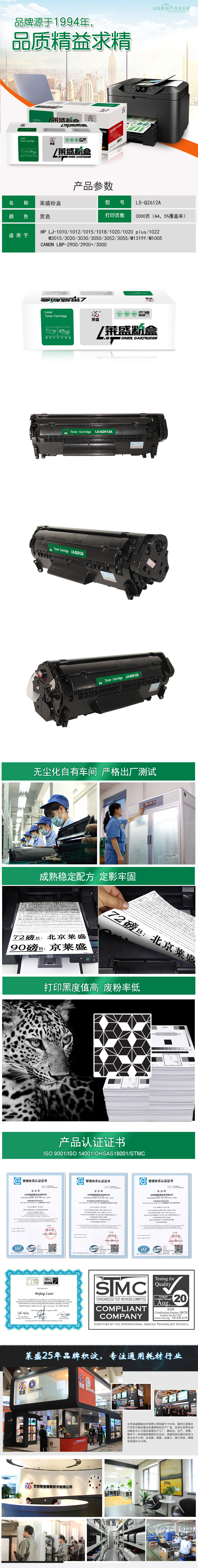 莱盛(laser) LS-2612A 打印量2000页 适用于HP LJ-1010/1012 墨粉盒 1.00 只/支 (计价单位:支) 黑色