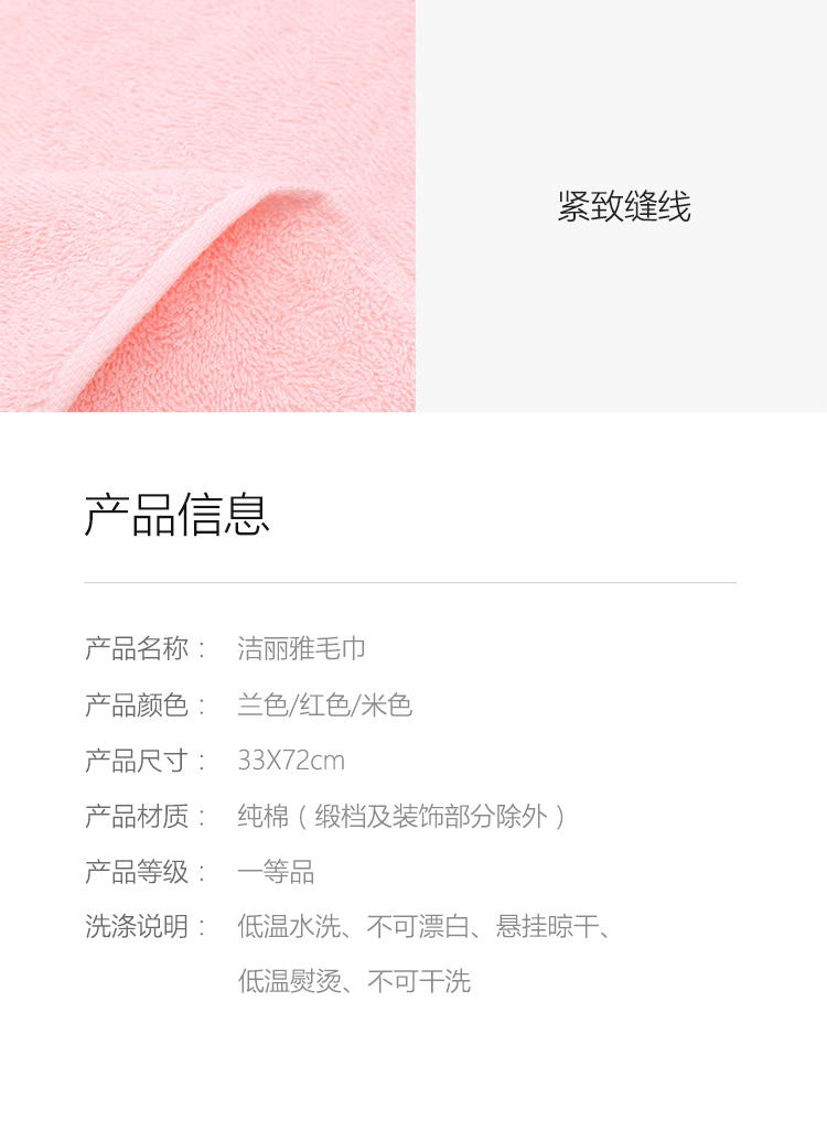 洁丽雅纯棉缎档面巾三条装72*33cm/6717 颜色随机