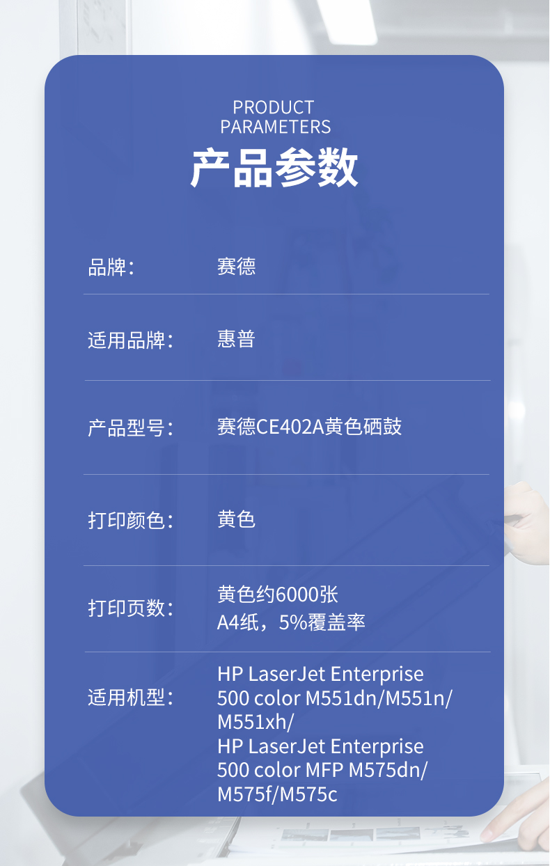 赛德 CE402A 打印量6000页 适用惠普HP551n/575dn/fw/570dw 硒鼓 (计价单位:只) 黄色